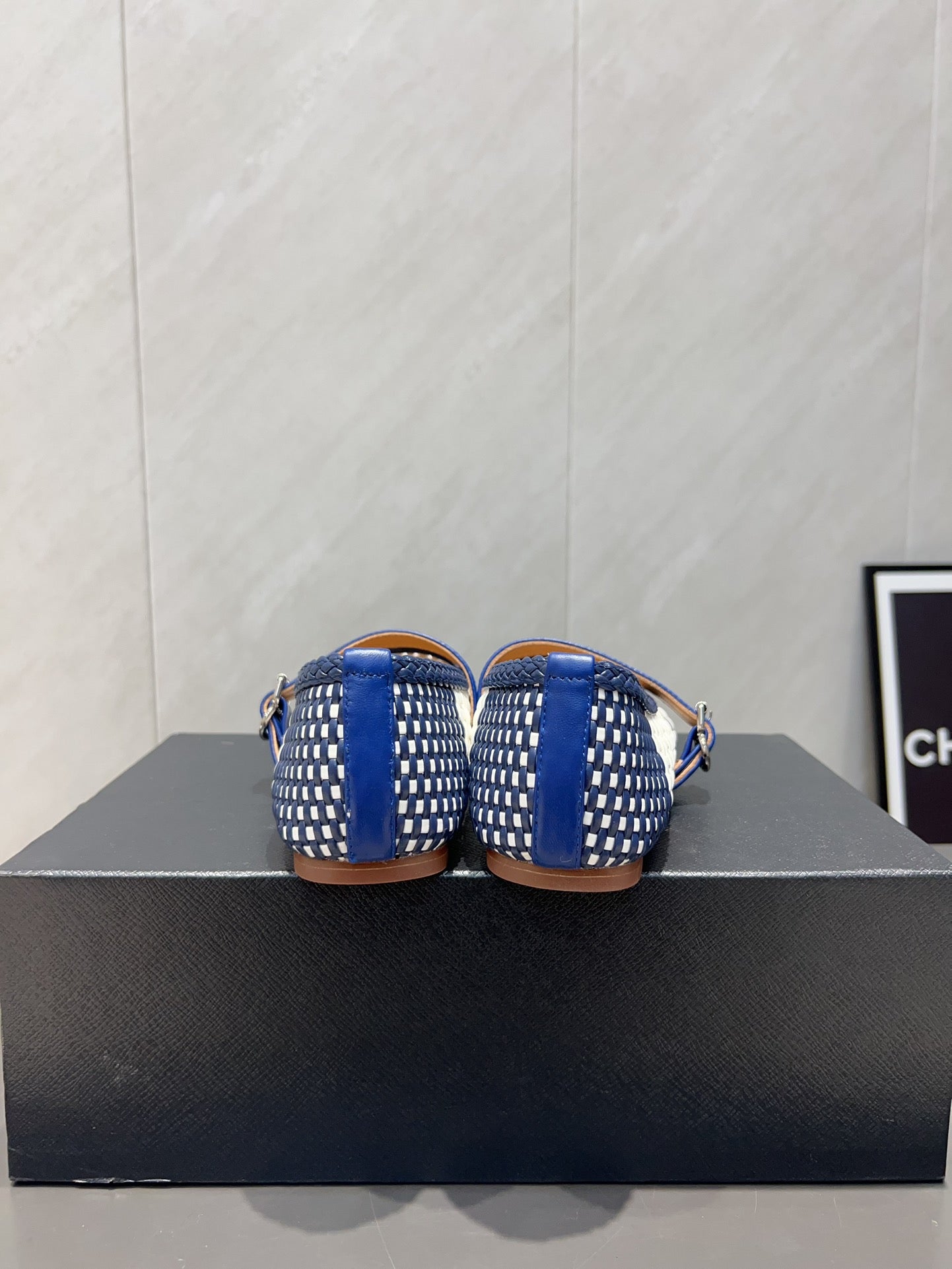 ALAIA MARY JANE FLATS WOVEN PATTERN 25S IN WHITE MIX NAVY BLUE CALFSKIN