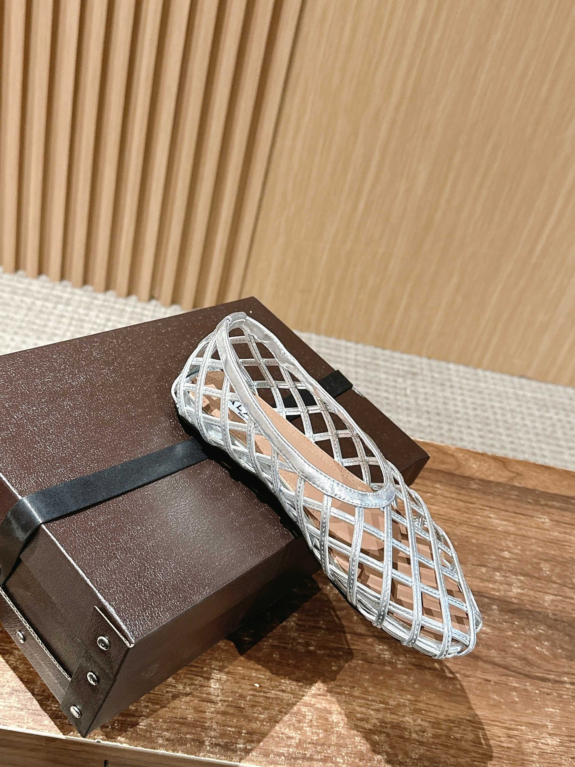 ALAIA MESH BALLET FLATS 25S IN SILVER LAMBSKIN