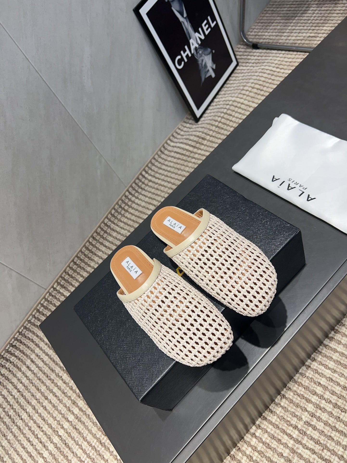 ALAIA WOVEN FLAT SHOES IN CREAM WHITE CALFSKIN STYLE 3