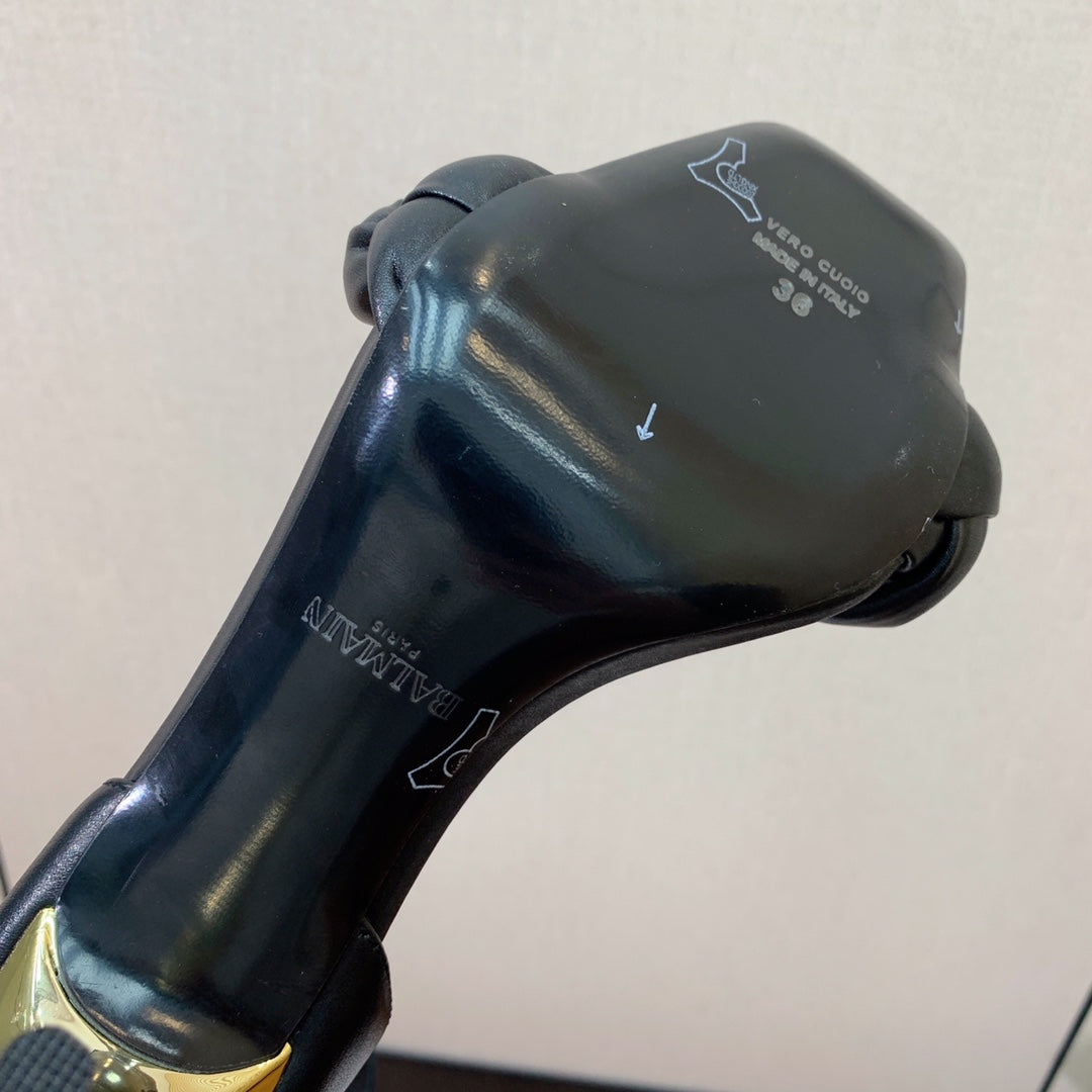 BALMAIN 25S ANKLE STRAP HIGH HEEL 95MM IN BLACK CALFSKIN