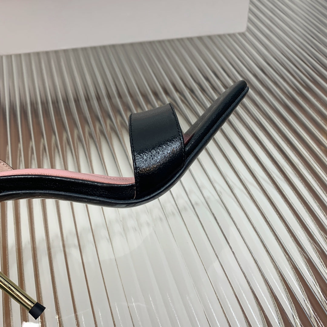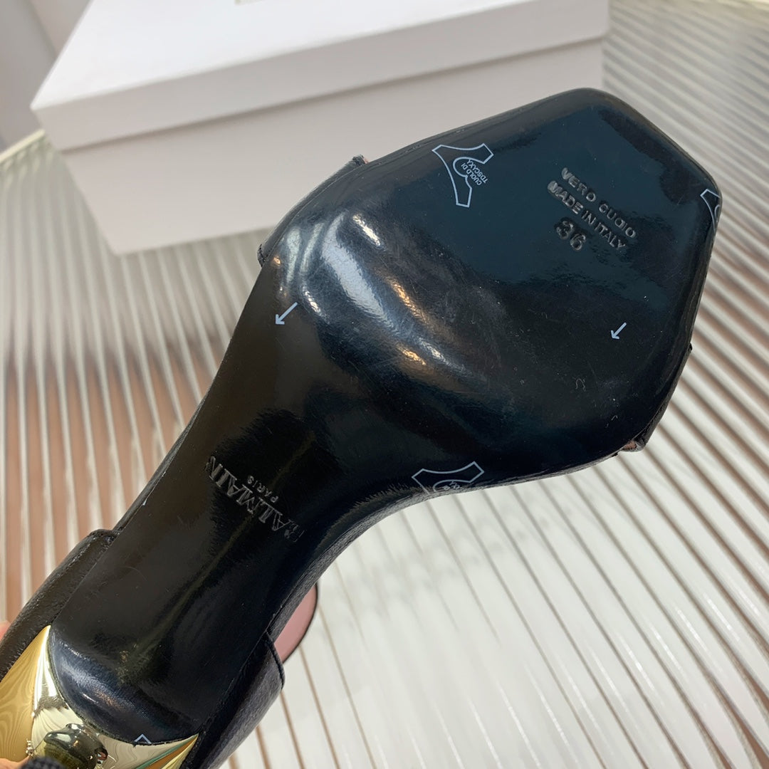 BALMAIN 25S B STRAP HIGH HEEL SANDALS 95MM IN BLACK GLOSSY CALFSKIN