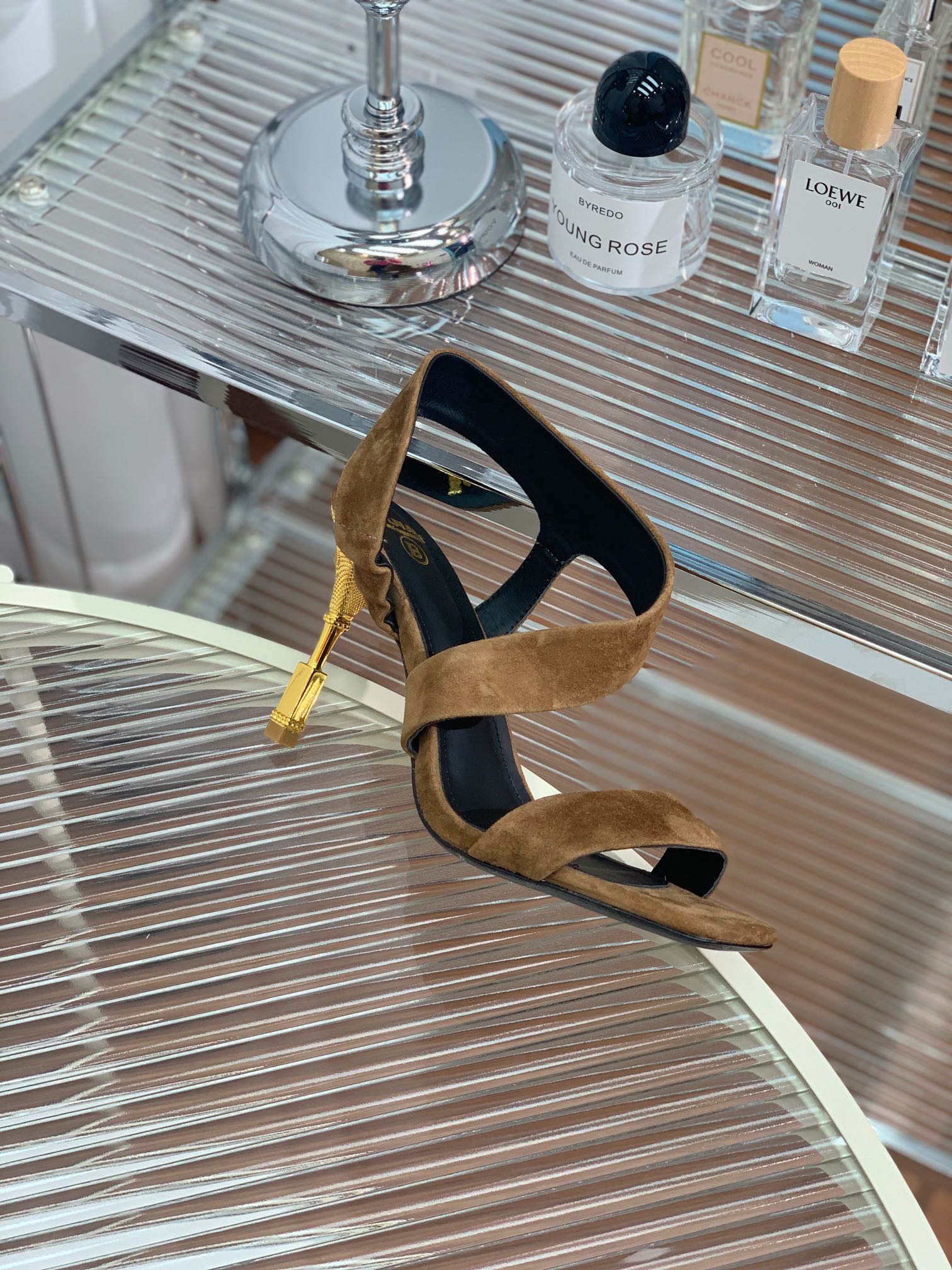 BALMAIN 25S HIGH HEEL SANDALS 95MM IN BROWN SUEDE