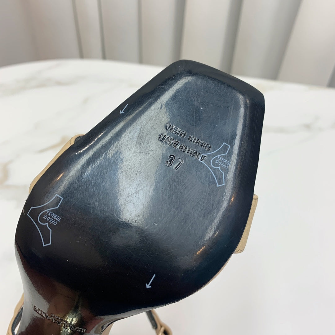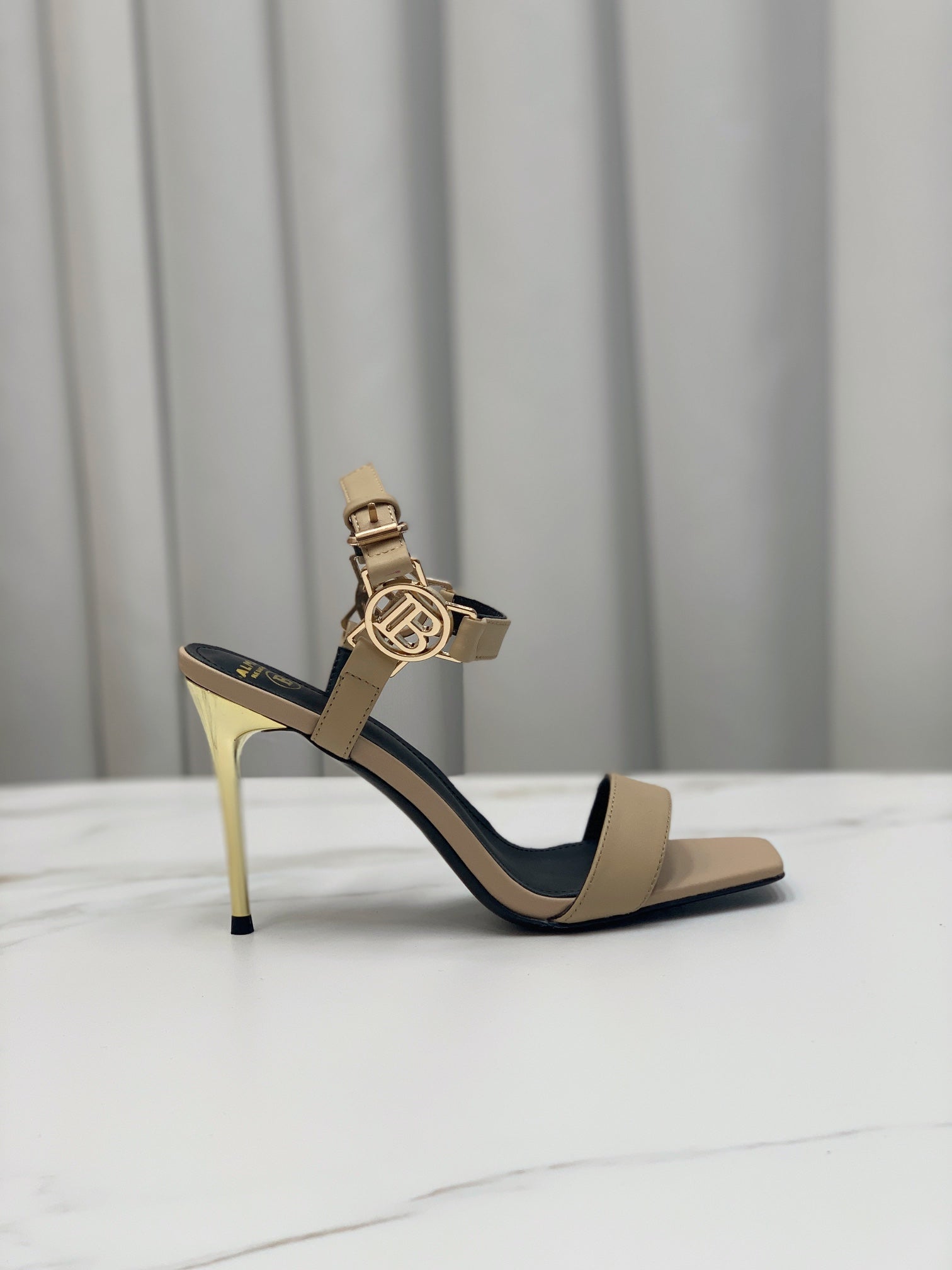 BALMAIN 25S HIGH HEELS WITH B METAL DETAIL 95MM IN LIGHT BROWN CALFSKIN