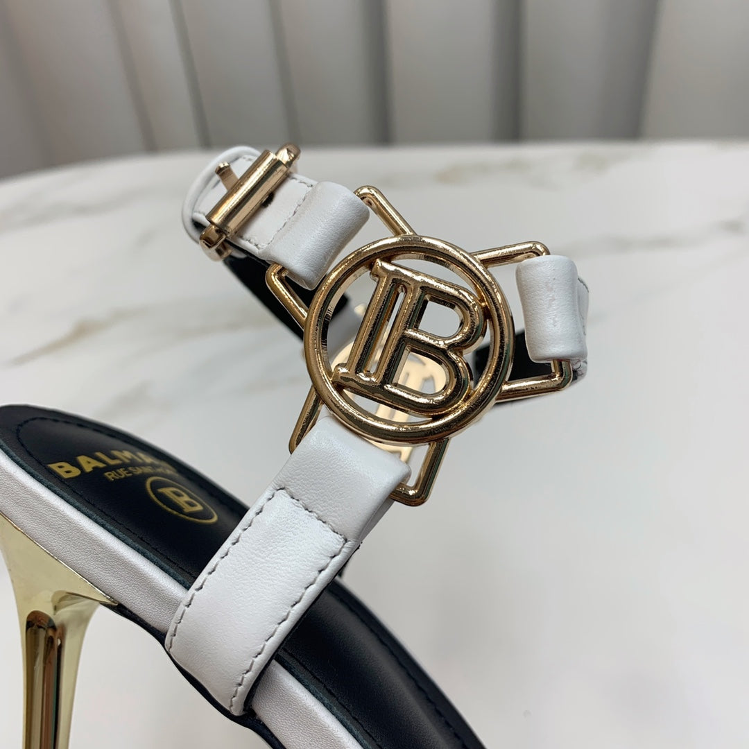 BALMAIN 25S HIGH HEELS WITH B METAL DETAIL 95MM IN LIGHT GRAY CALFSKIN