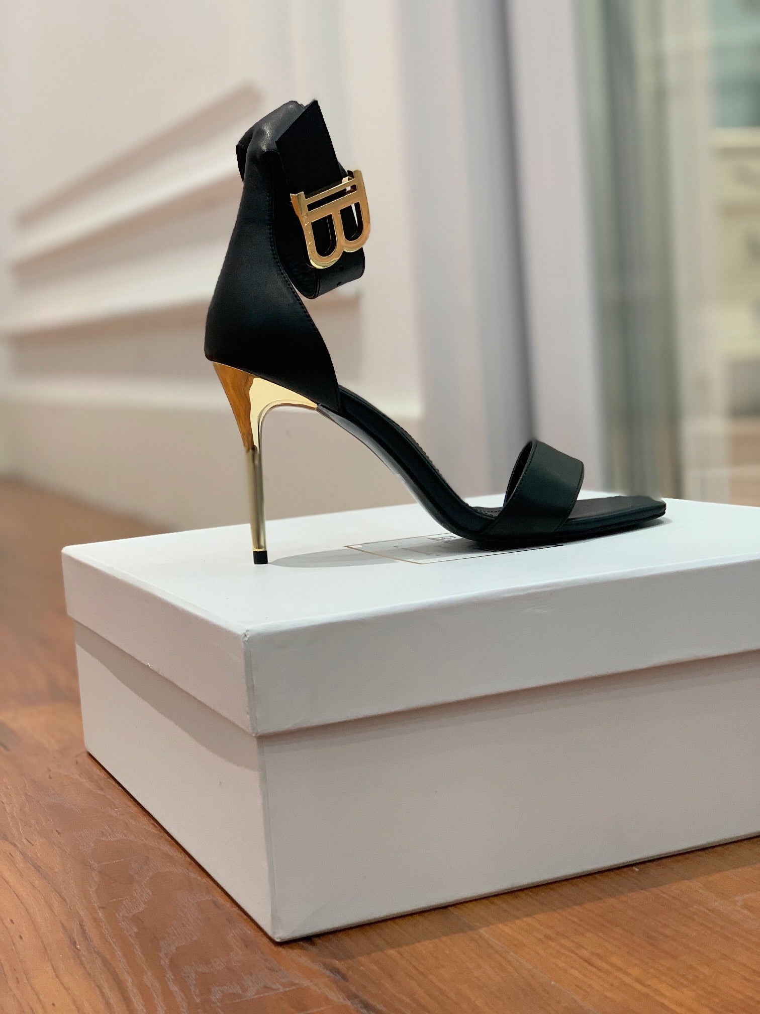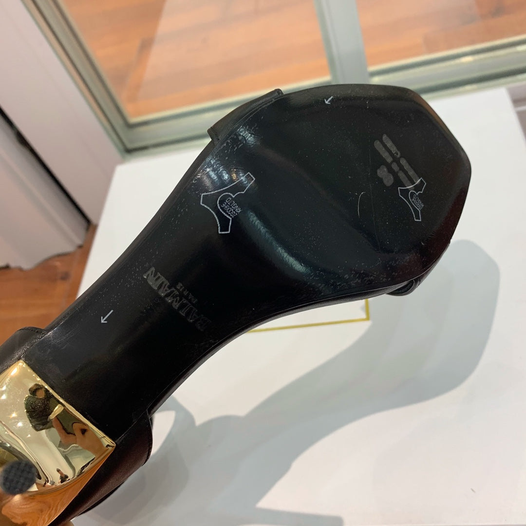 BALMAIN 25S THIN STRAP HIGH HEELS 105MM IN BLACK CALFSKIN GOLD HARDWARE