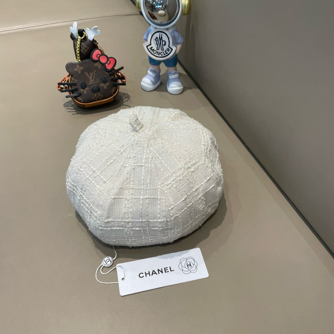 BERET HAT IN WHITE WOOL TWEED 422553