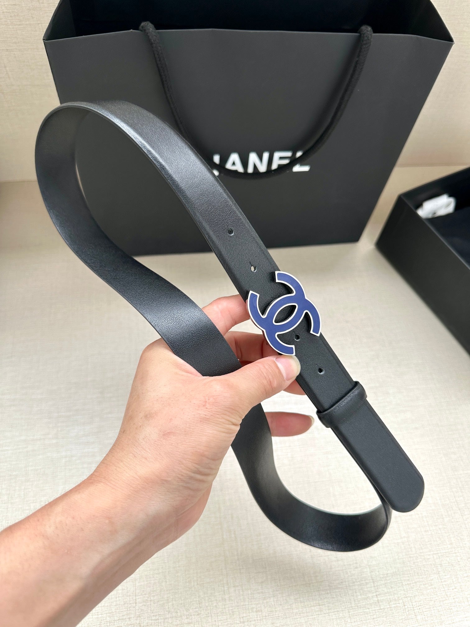CC 30MM BELT IN BLACK SMOOTH CALFSKIN WITH NAVY BLUE METAL LOGO