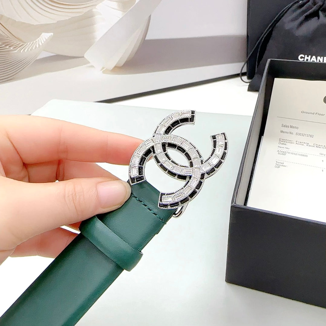 CC 30MM BELT IN GREEN FOREST CALFSKIN METAL HARDWARE