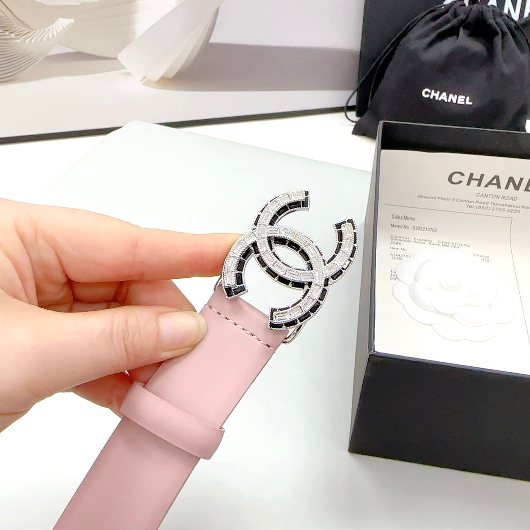 CC 30MM BELT IN LIGHT PINK CALFSKIN METAL HARDWARE