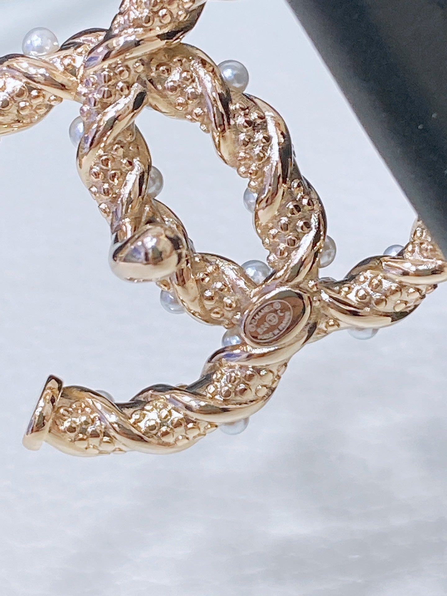 CC BELT 20MM IN PEACHY PINK EMBROIDERED CALFSKIN GOLD HARDWARE ATTACH PEARLS