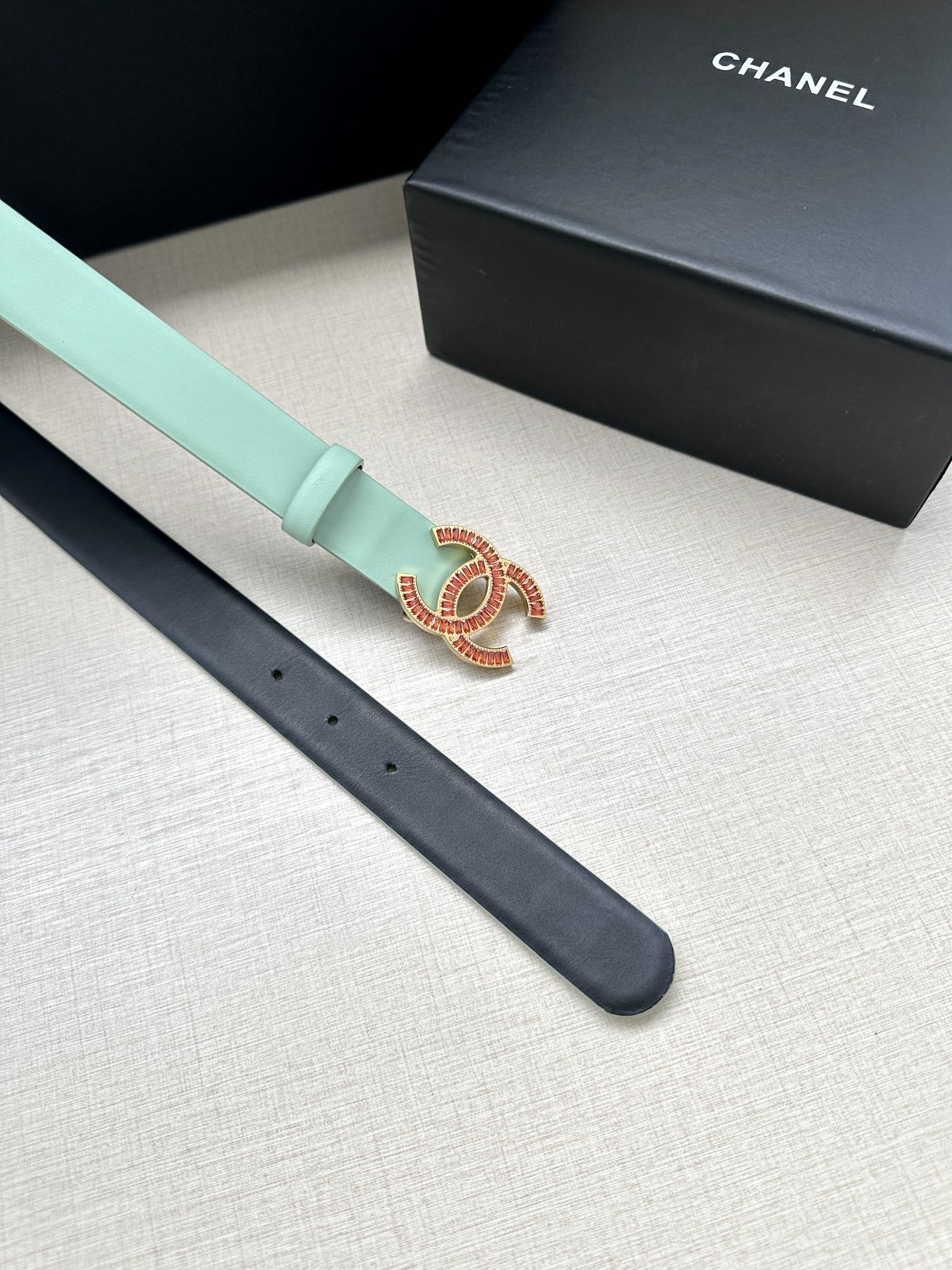 CHANEL 25S BELT 30 MM IN MINT GREEN CALFSKIN 616962