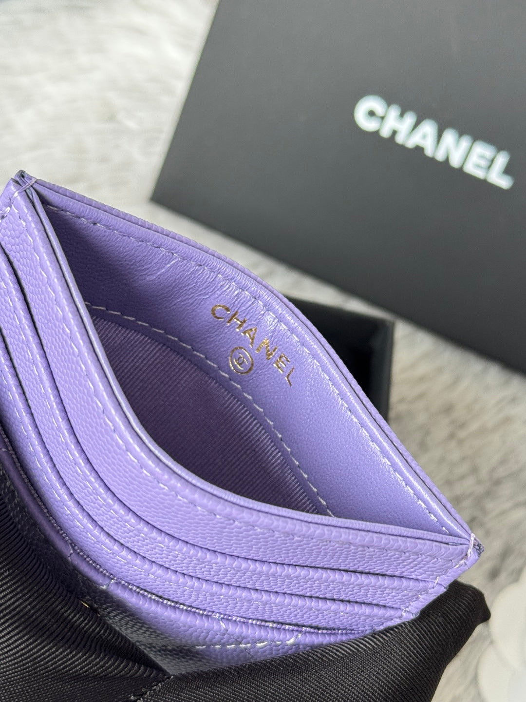 CHANEL 25S CARD HOLDER 11 IN LAVENDER PURPLE CAVIAR GOLD HARDWARE