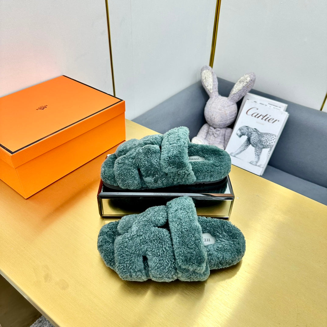 CHYPRE SANDAL IN FOREST GREEN SHEARLING