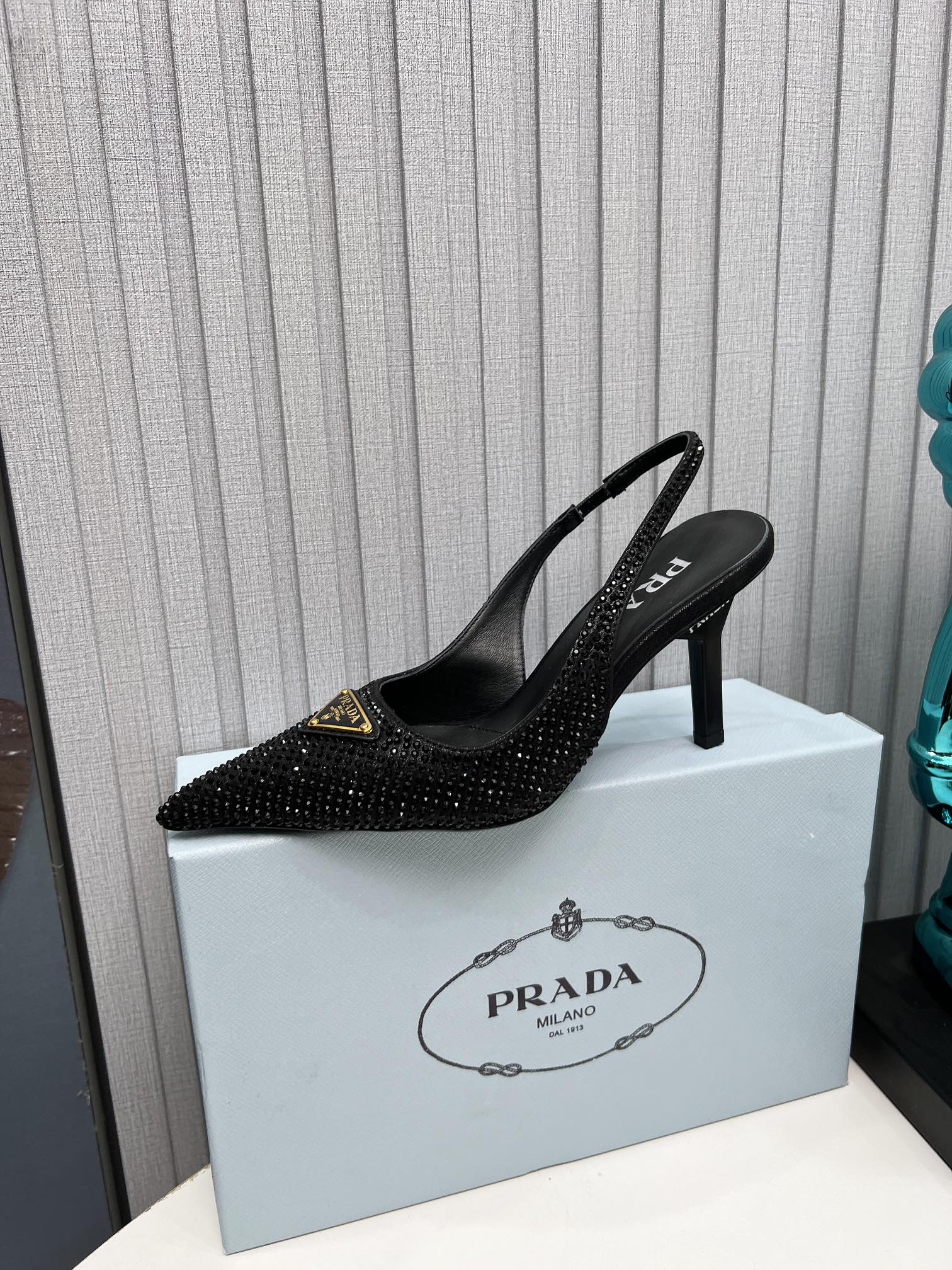 CRYSTAL SATIN HIGH-HEEL SLING BACK PUMPS BLACK