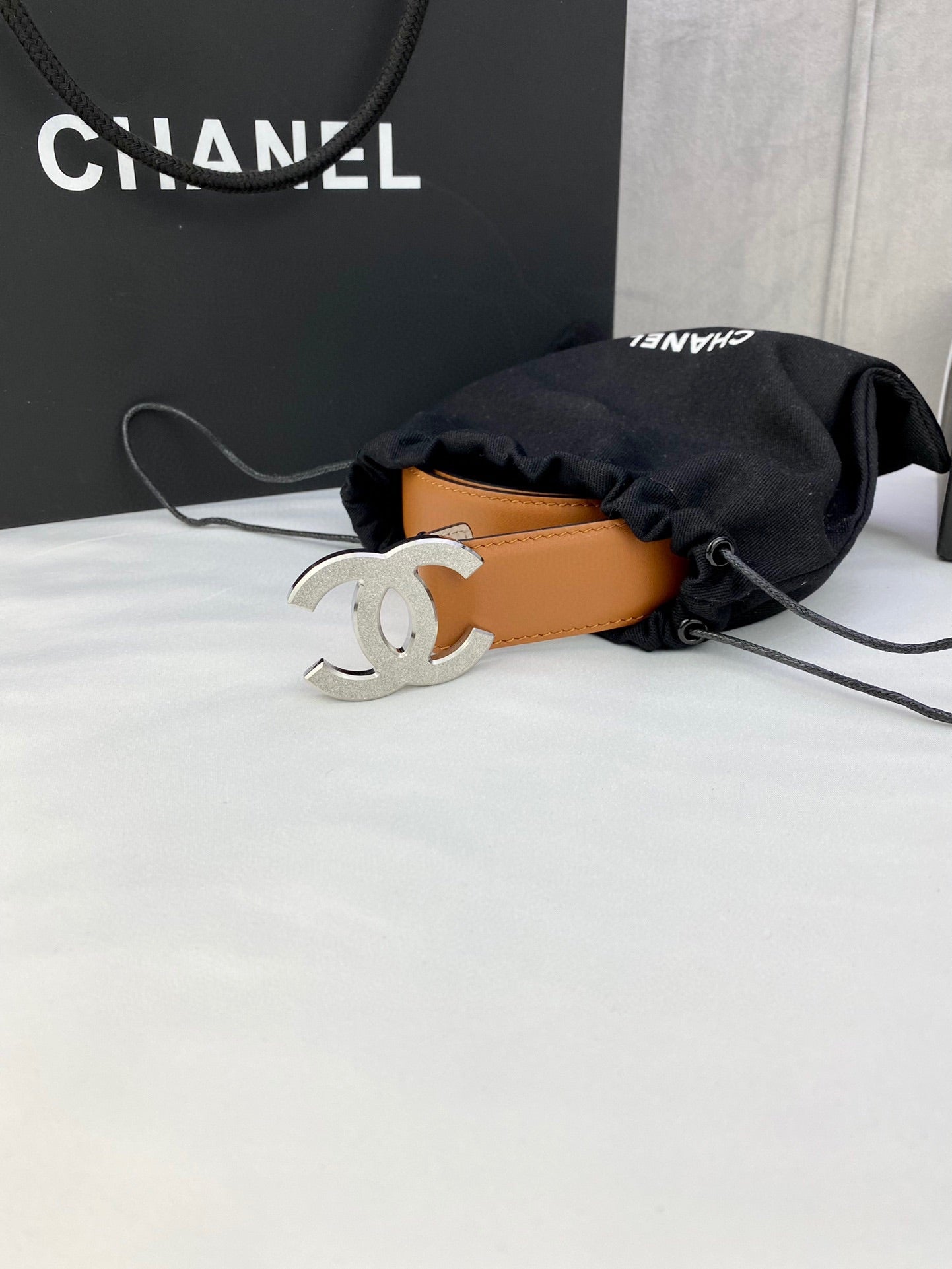 DOUBLE C BELT 30MM IN BROWN CALFSKIN METAL BUCKLE