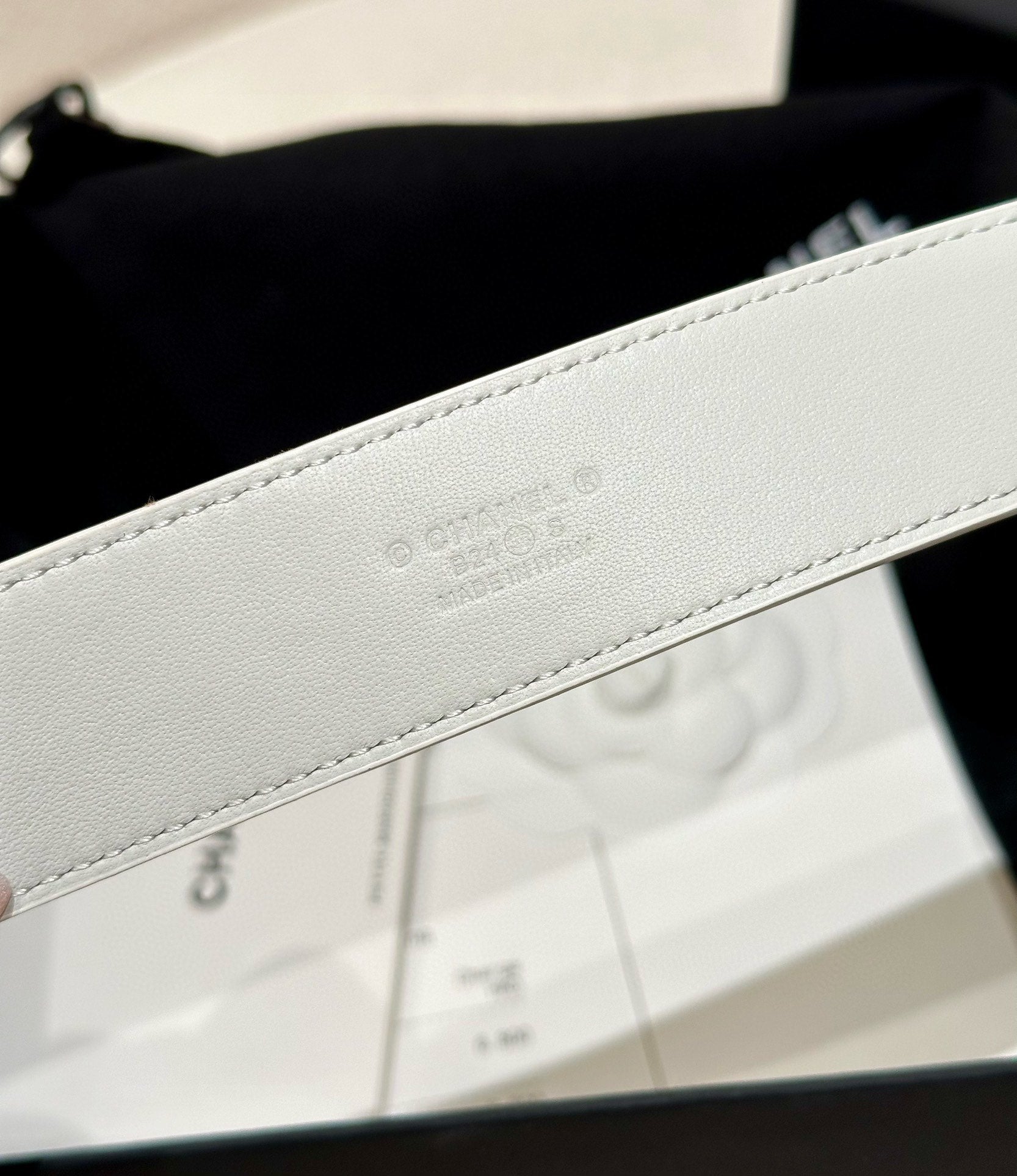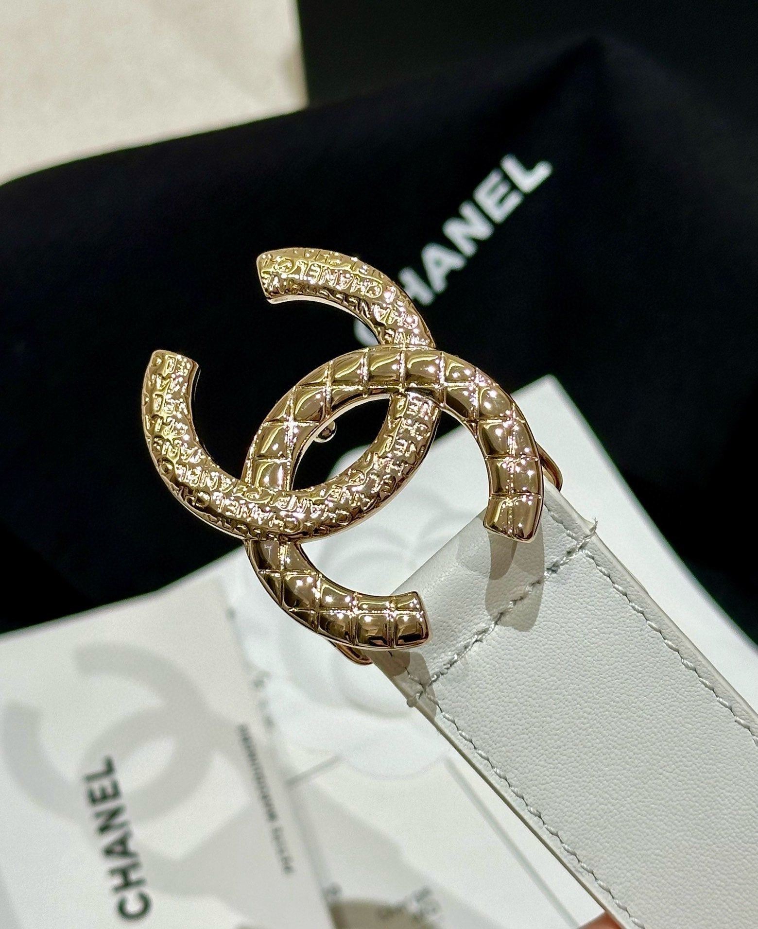 DOUBLE C BELT 30MM IN WHITE CALFSKIN GOLD BUCKLE WITH EMBOSSED CHECK PATTERN