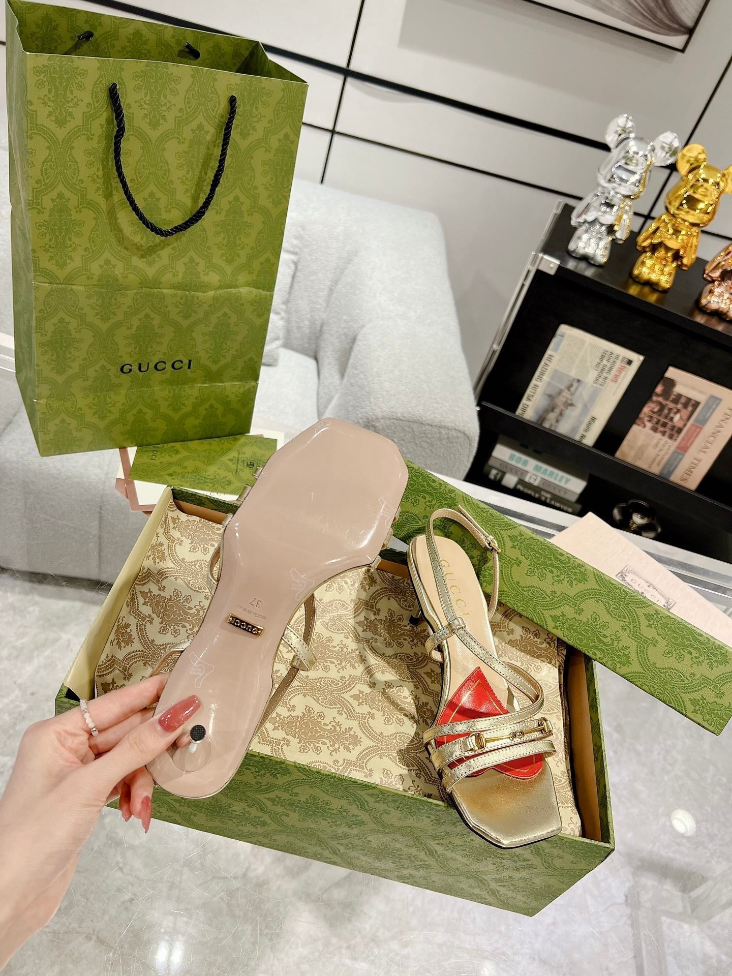 GG CLASSIC STRAPPY HEEL SANDAL METALLIC GOLD CALFSKIN