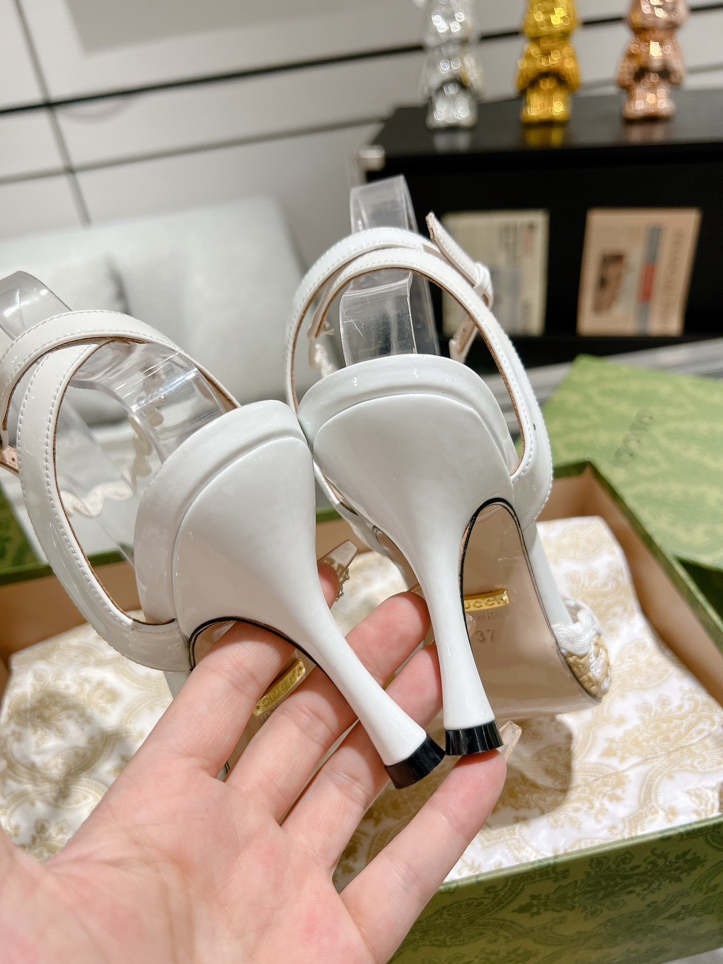 GG HIGH - HEEL SANDAL WHITE FABRIC ATTACH BOW