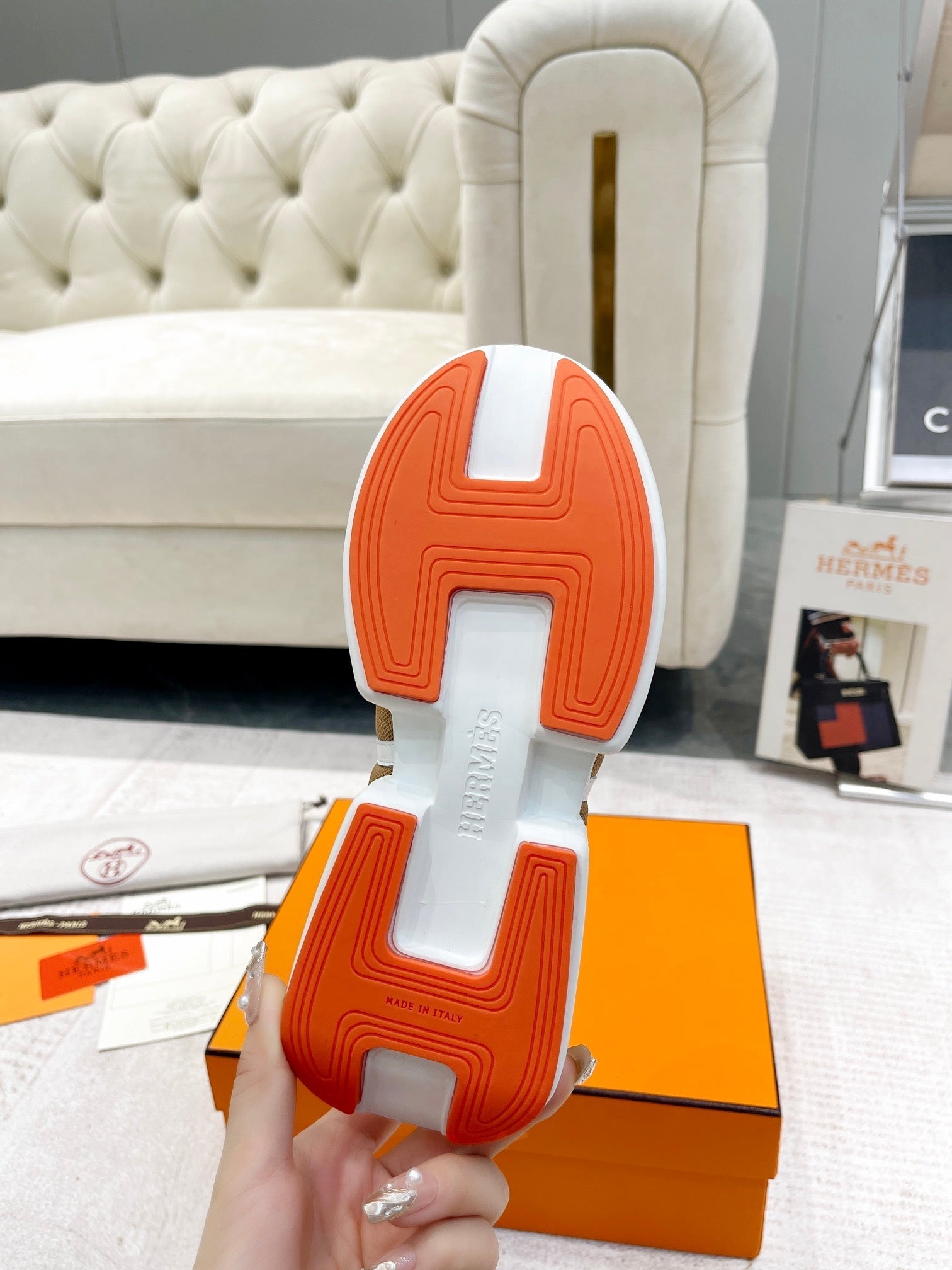 GIGA SNEAKER IN CIDER BROWN STITCHED MESH AND WHITE CALFSKIN