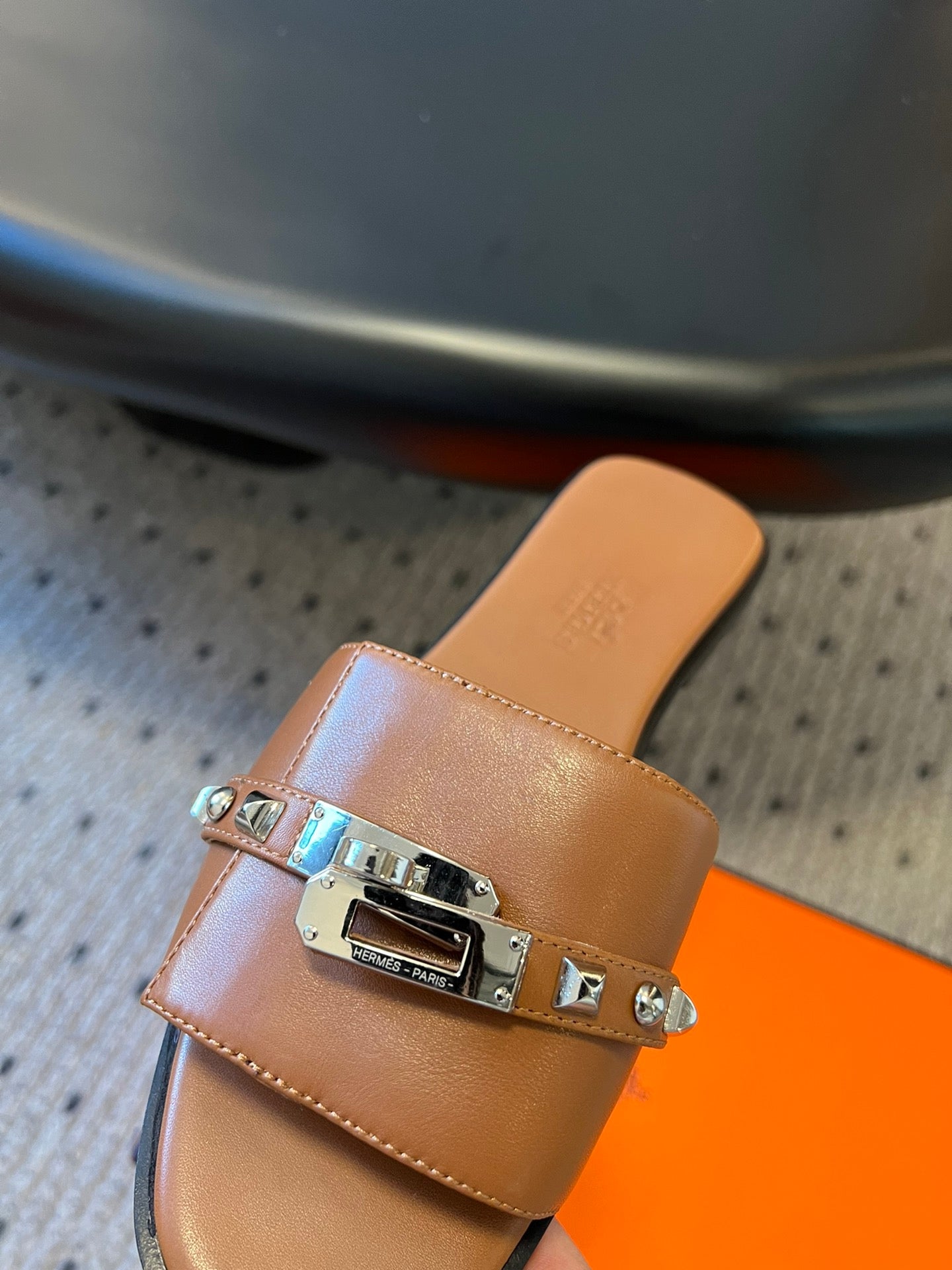 GIULIA FLAT SANDAL IN BRONZE BROWN CALFSKIN