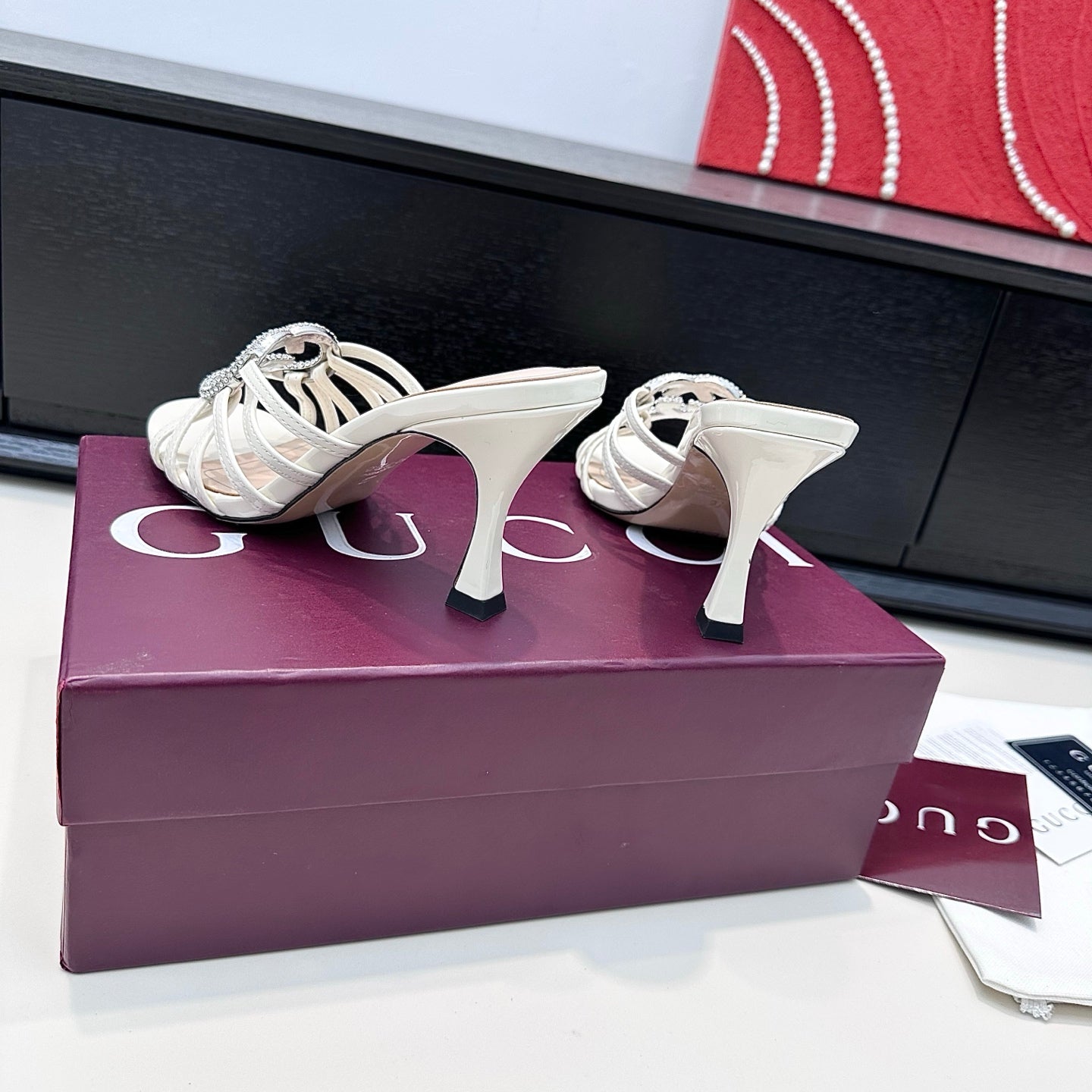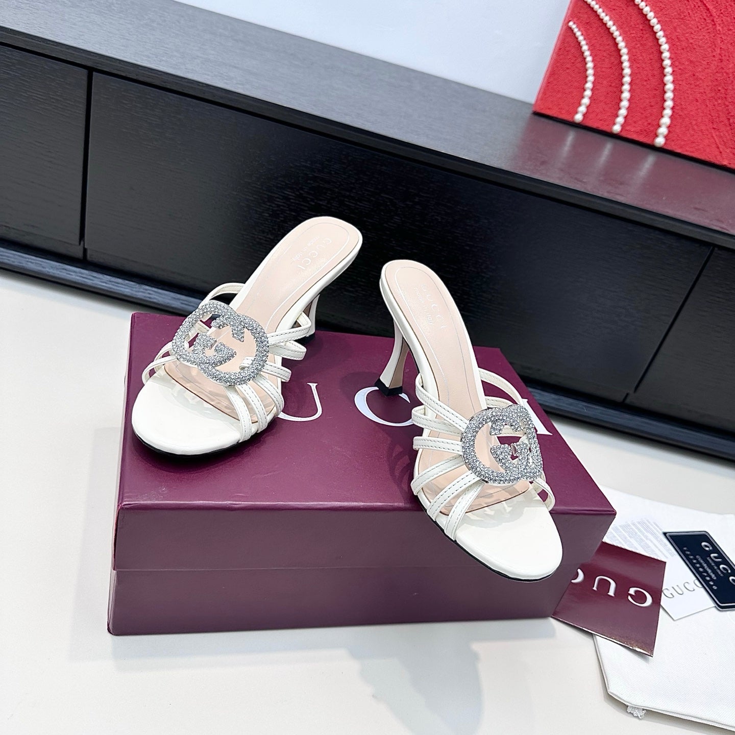 GUCCI 26S HEELED SANDALS 85 MM IN WHITE CALFSKIN WITH CRYSTAL