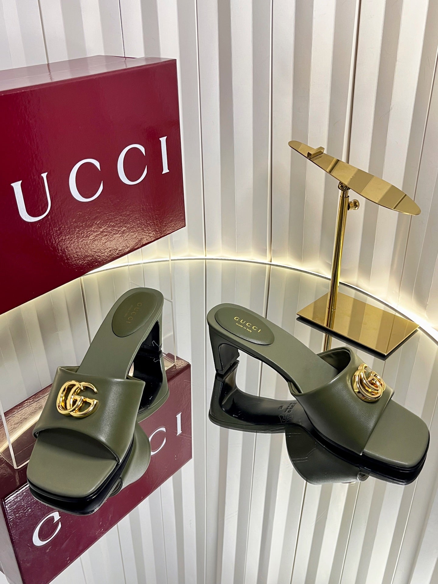 GUCCI 26S HIGH-HEELED SANDALS 45 MM IN MOSS GREEN CALFSKIN