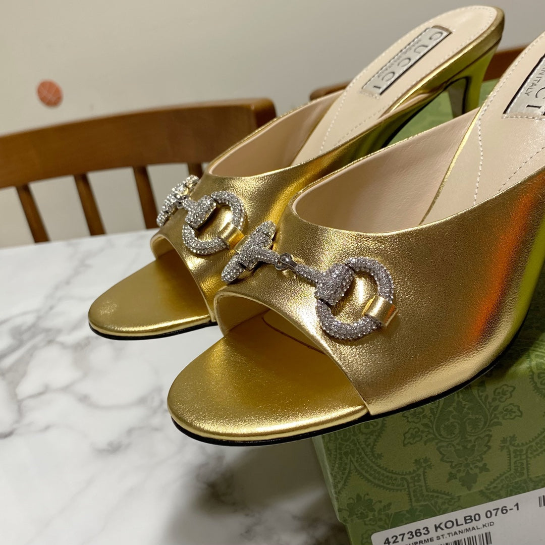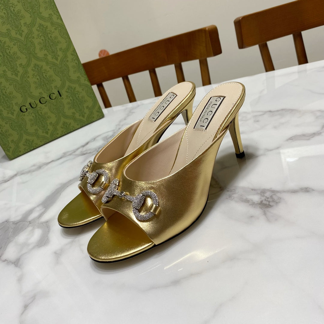 GUCCI 26S HORSEBIT HIGH-HEELED SANDALS 80 MM IN GOLD CALFSKIN