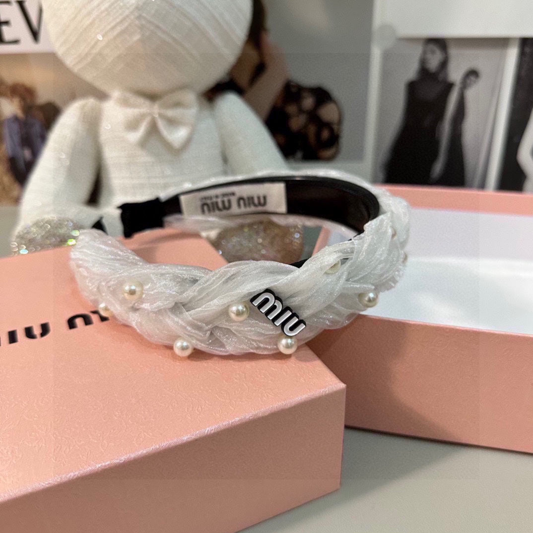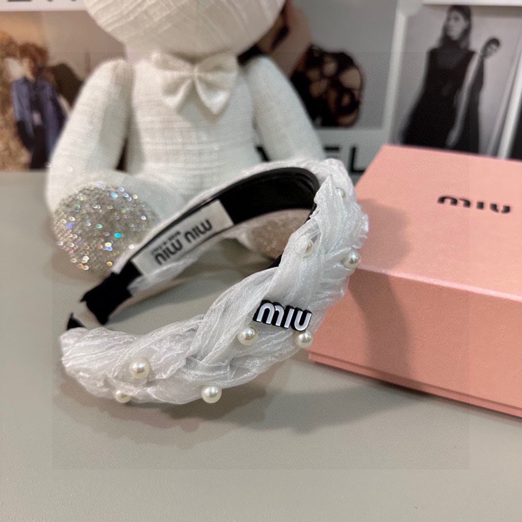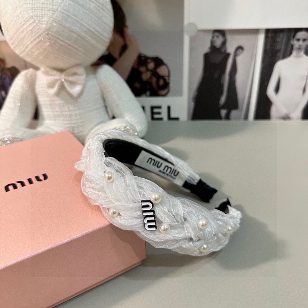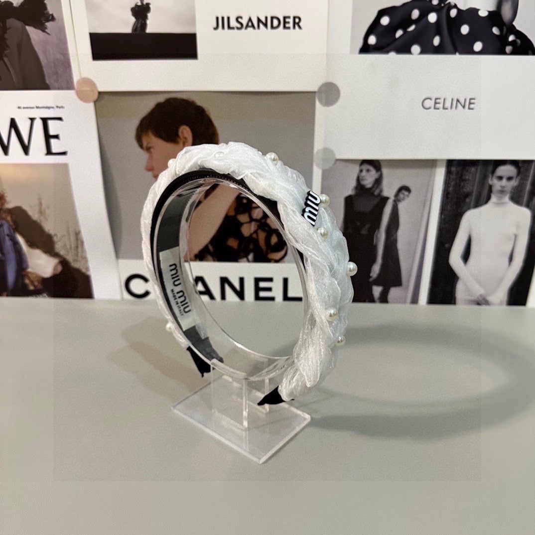 HAIR BAND IN WHITE CHIFFON PEARL-EMBELLISHED 395326