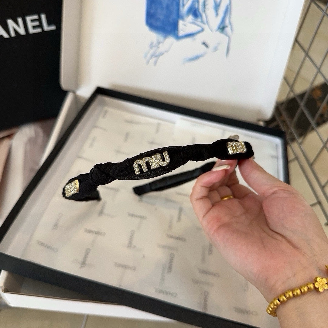 HEADBAND CRYSTALS LOGO IN BLACK VOILE 414443