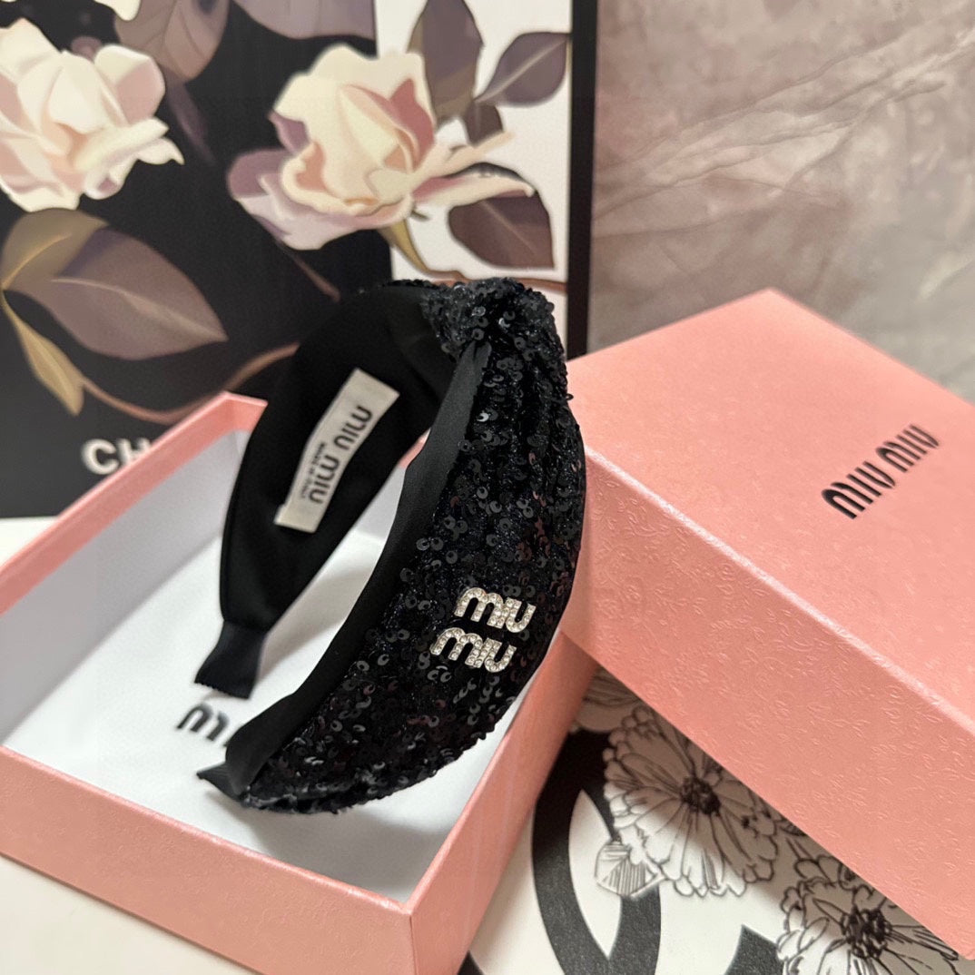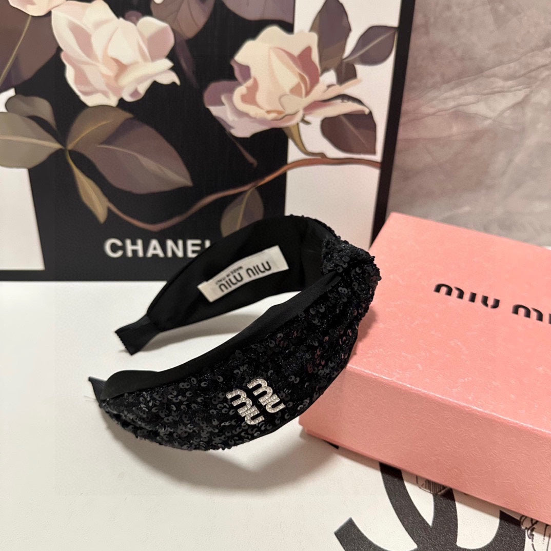 HEADBAND IN BLACK VELVET SEQUINS-EMBELLISHED 361159