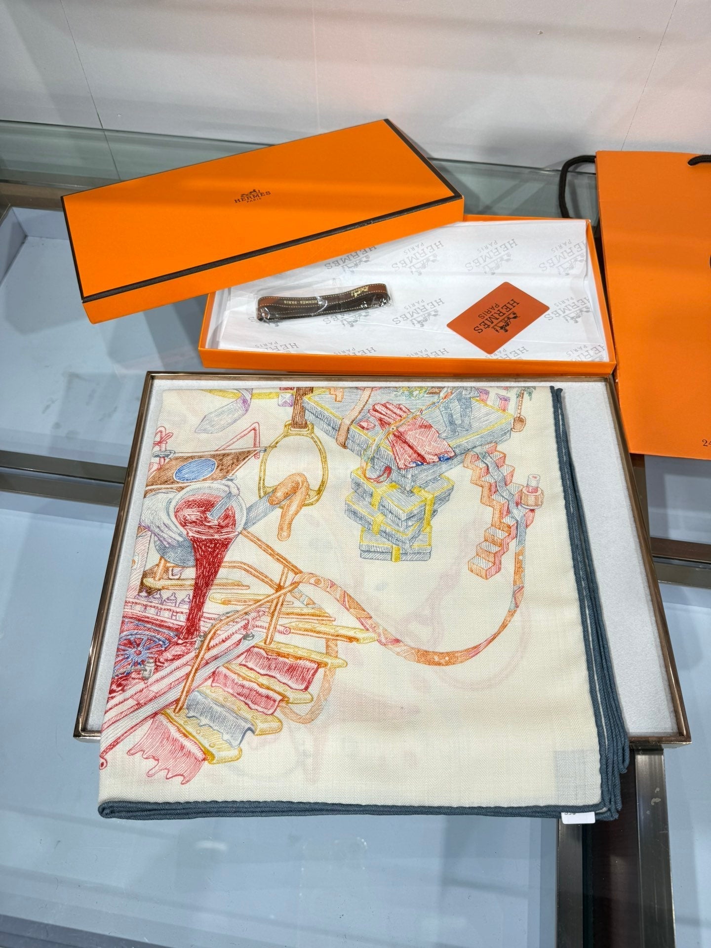 HERMES 25S SCARF 136 IN SILK CASHMERE 989711