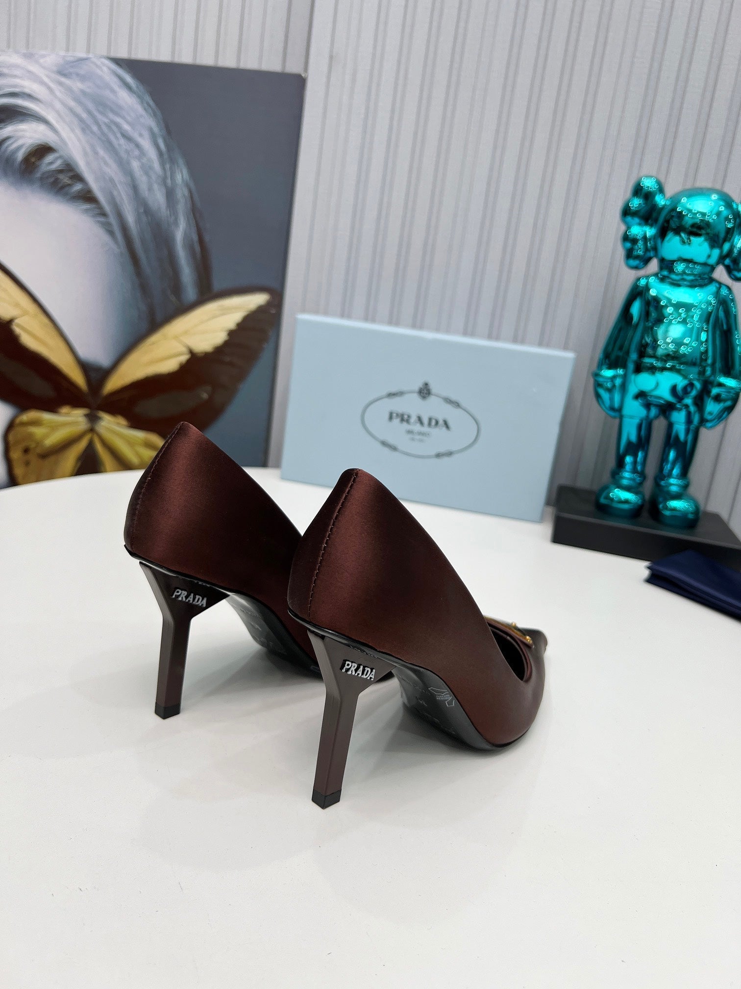 HIGH-HEEL PUMPS IN CHOCOLATE BROWN SATIN
