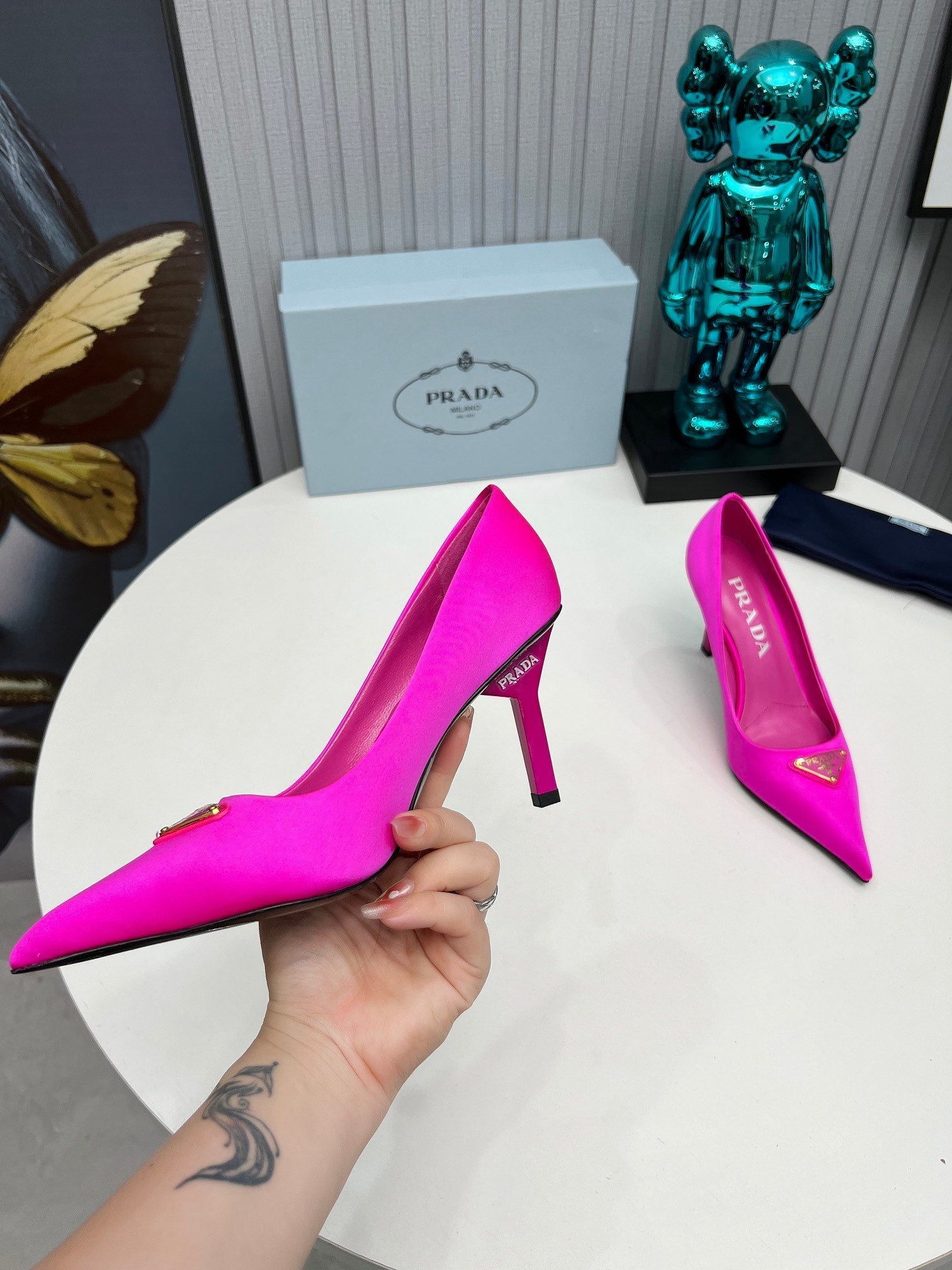 HIGH-HEEL PUMPS IN HOT PINK SATIN