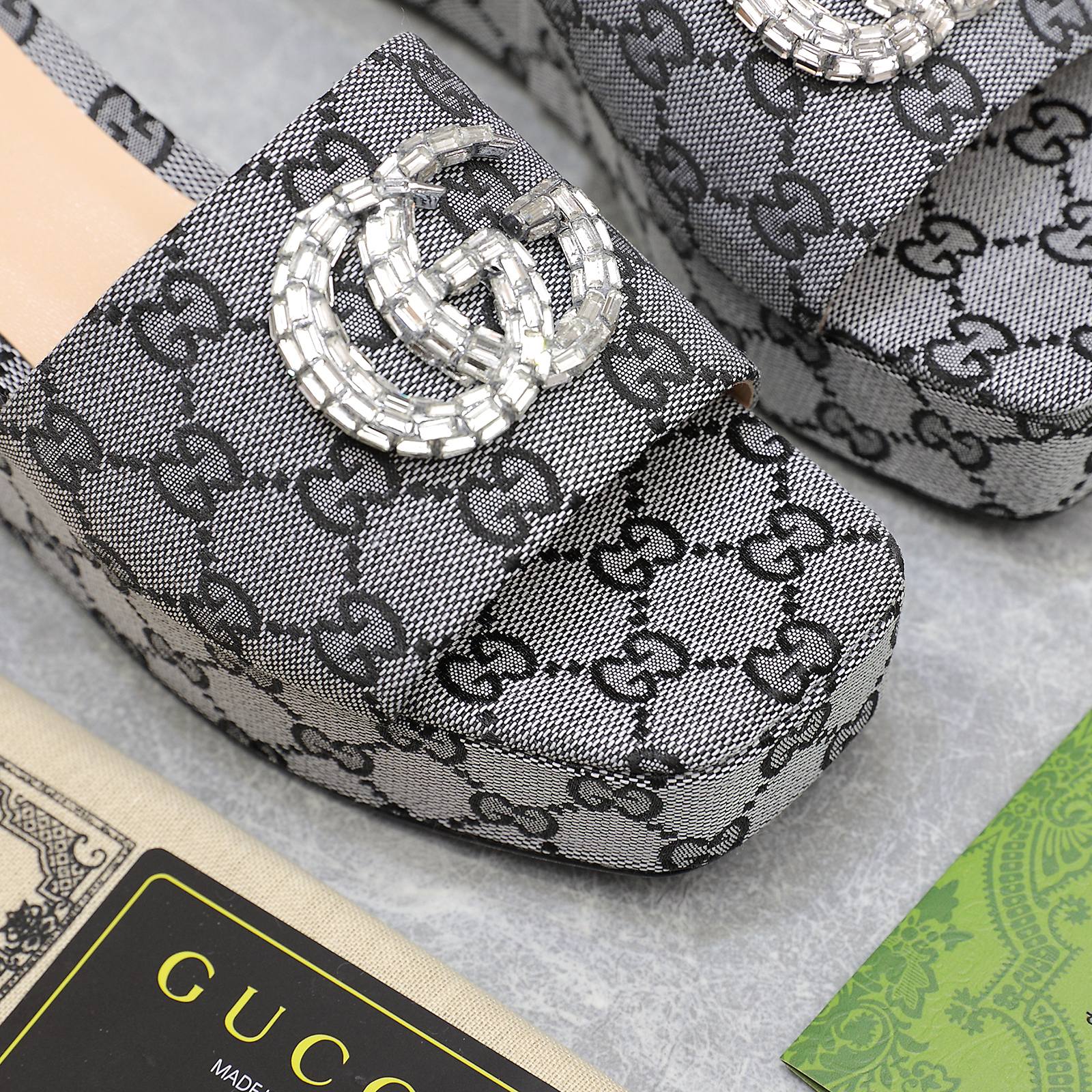 HIGH WEDGE PLATFORM WITH DOUBLE G IN GRAY CANVAS