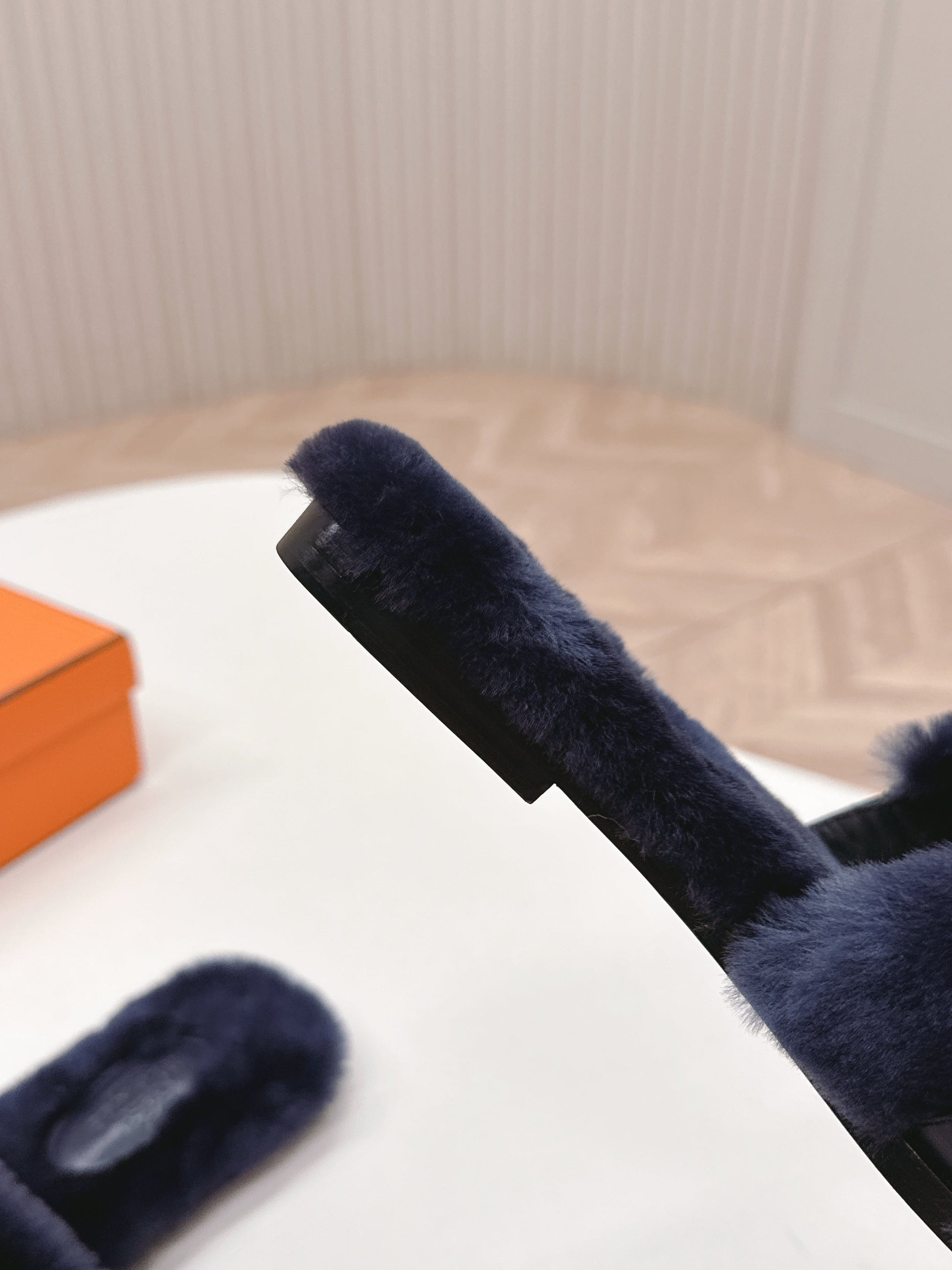 HM 25S ORAN SANDAL IN CHARCOAL NAVY SHEARLING WITH SILVER HARDWARE