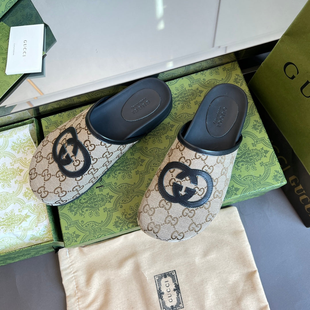 INTERLOCKING G MULE IN BEIGE MONOGRAM CANVAS AND LEATHER