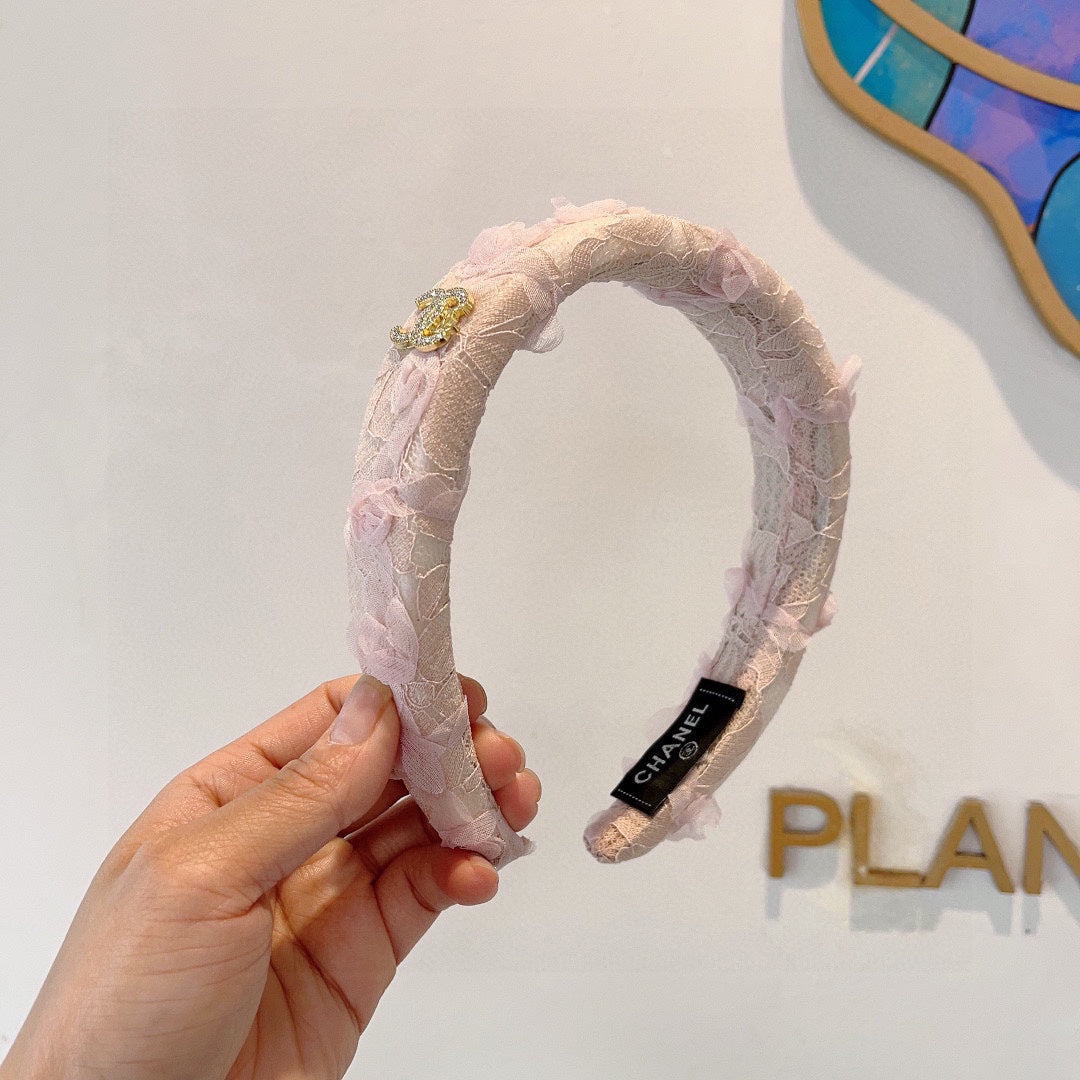 LIGHT PINK FABRIC WITH ROSE LACE TRIM HAIRBAND 414413