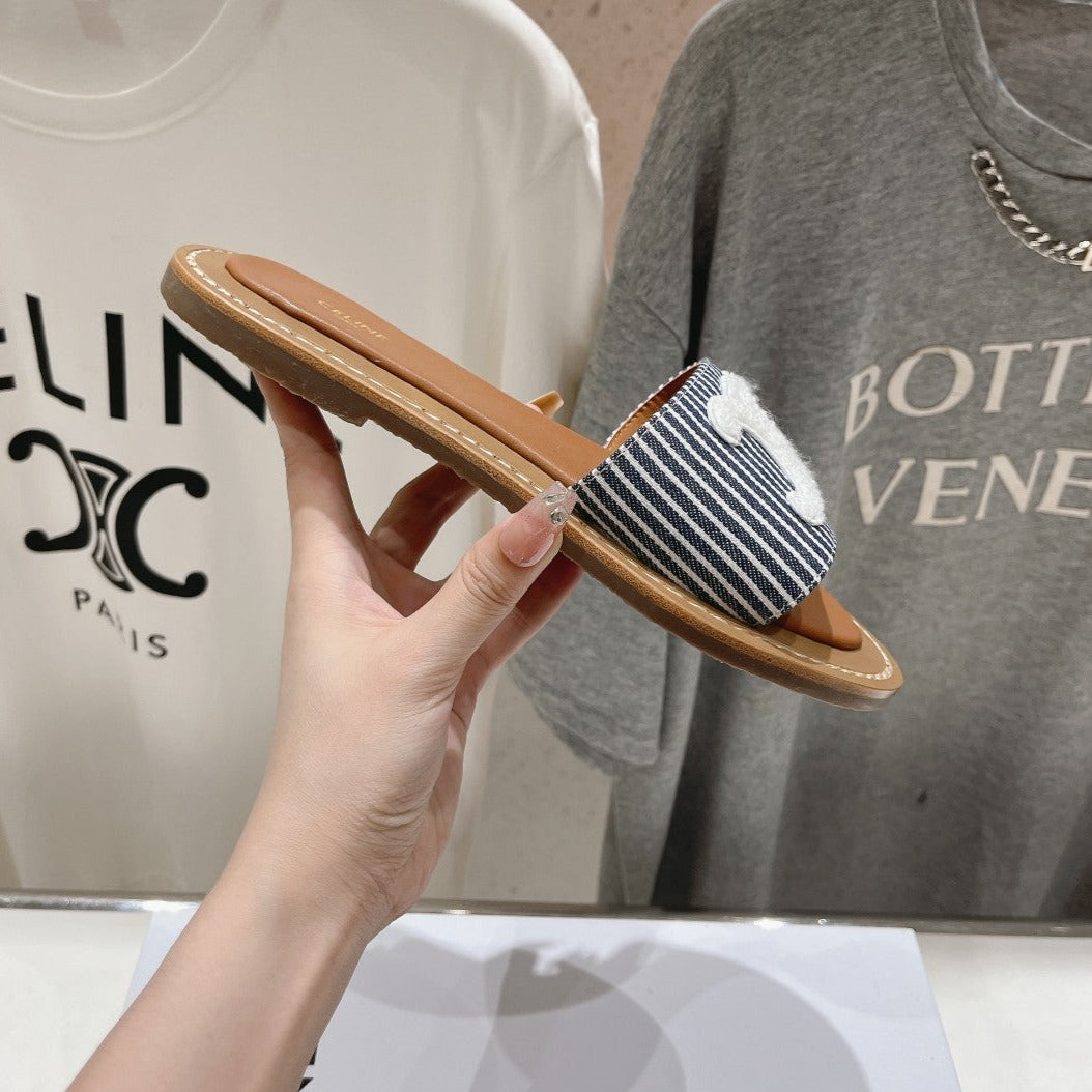 LYMPIA MULE IN TRIOMPHE JACQUARD WOOLLEN FABRIC White Black Caro