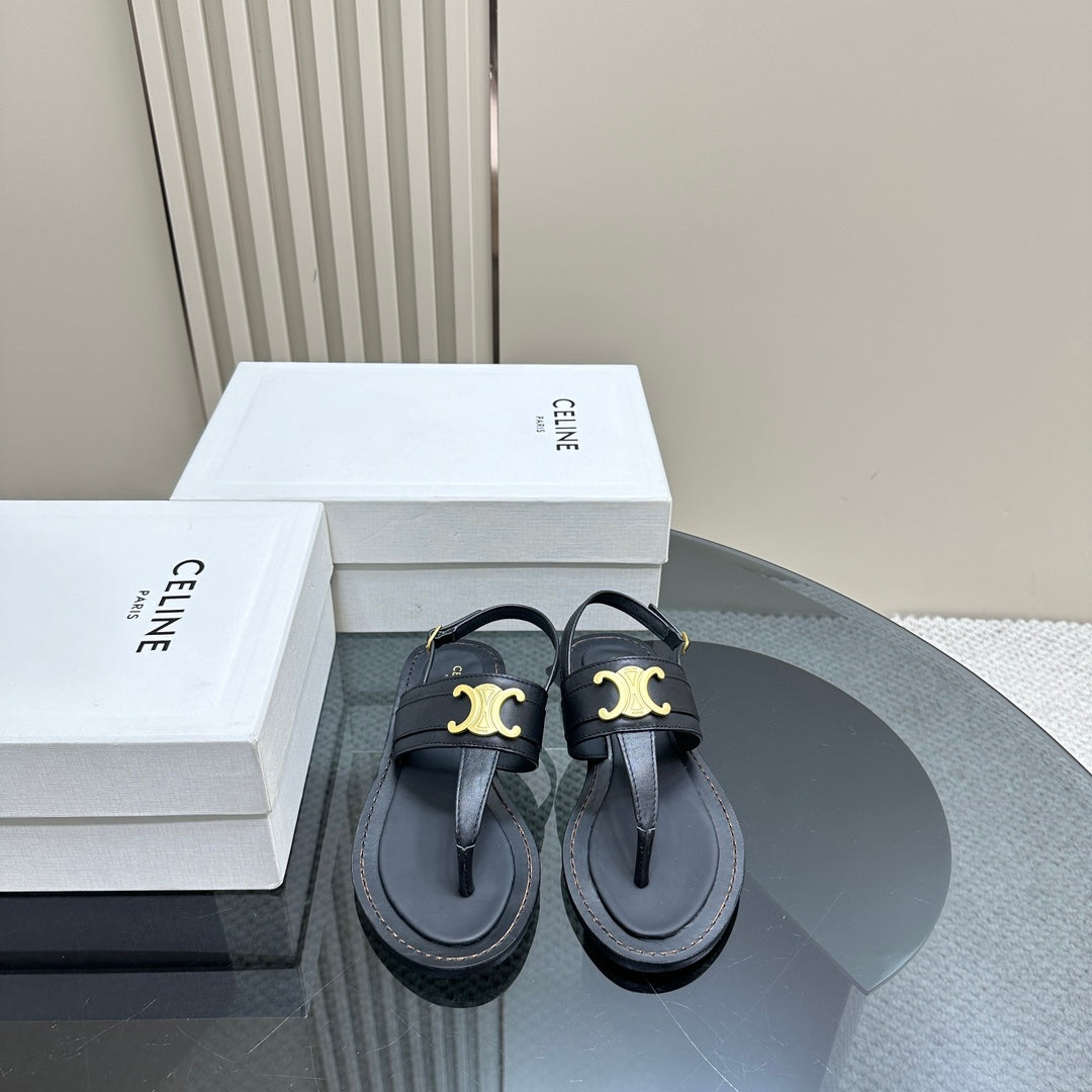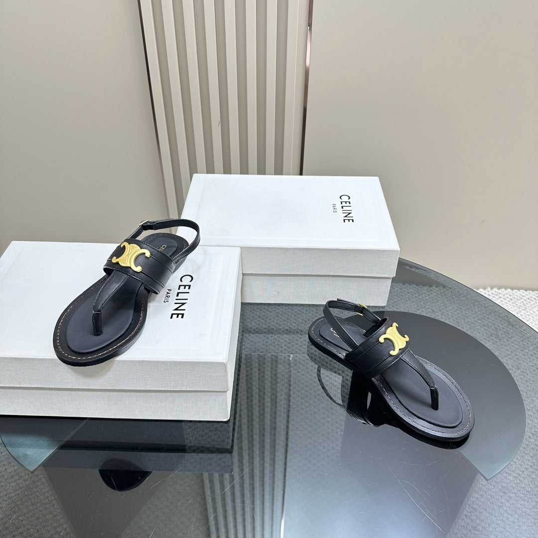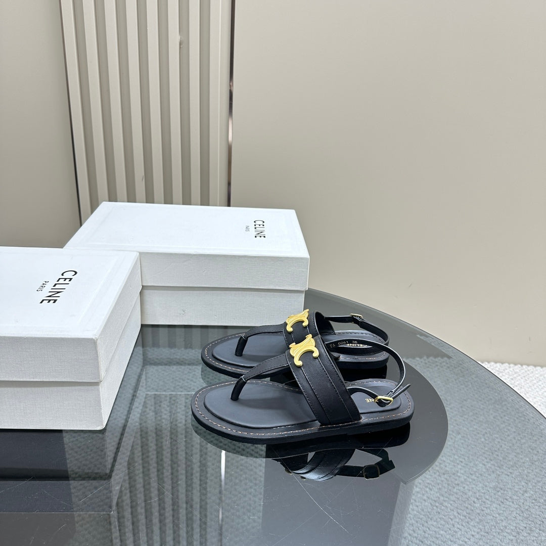 LYMPIA TRIOMPHE THONG IN CALFSKIN BLACK