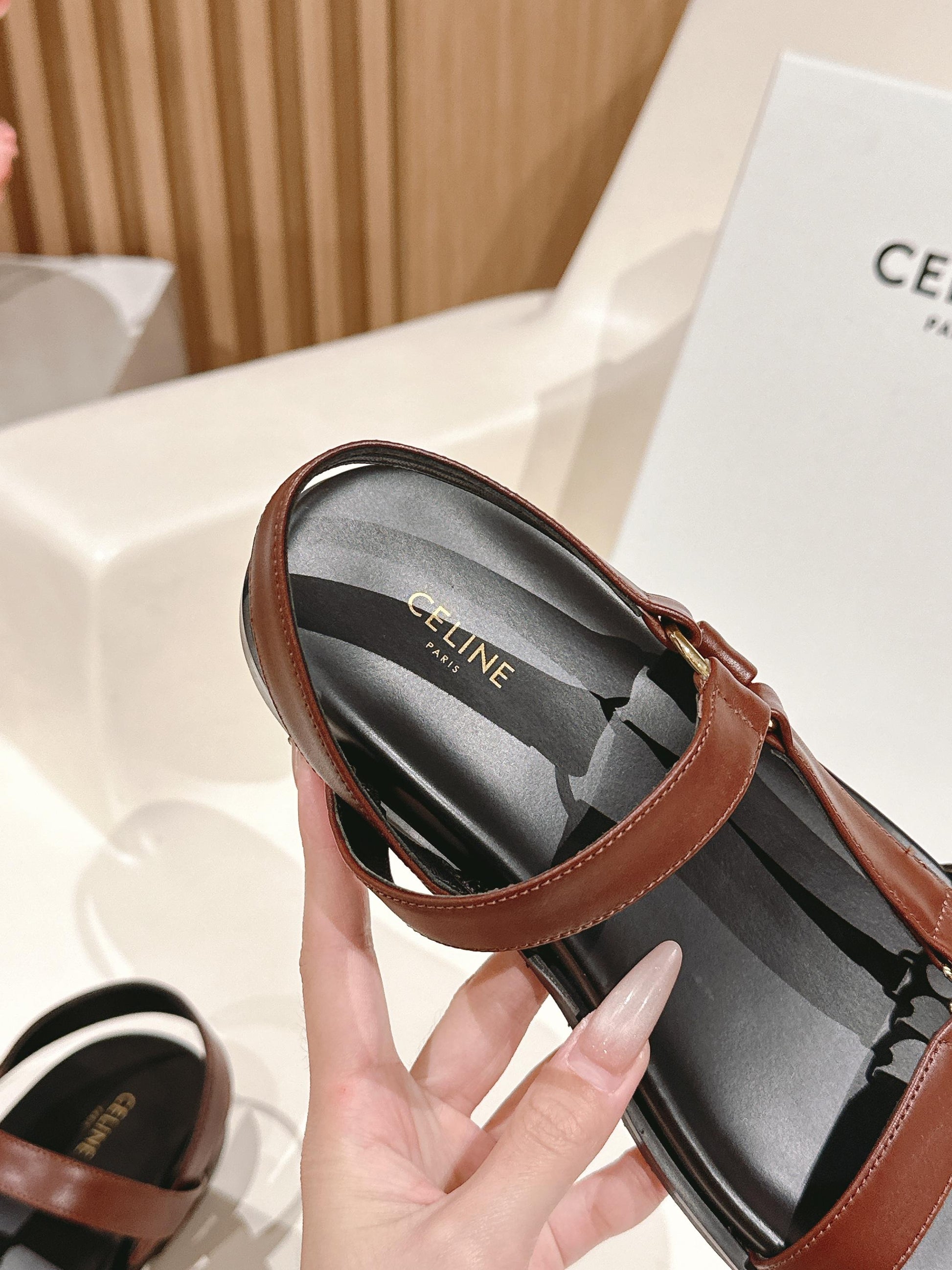 MAUD SANDAL WITH TRIOMPHE IN RUST BROWN CALFSKIN