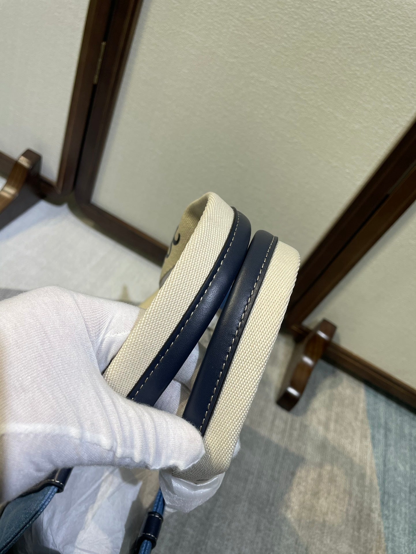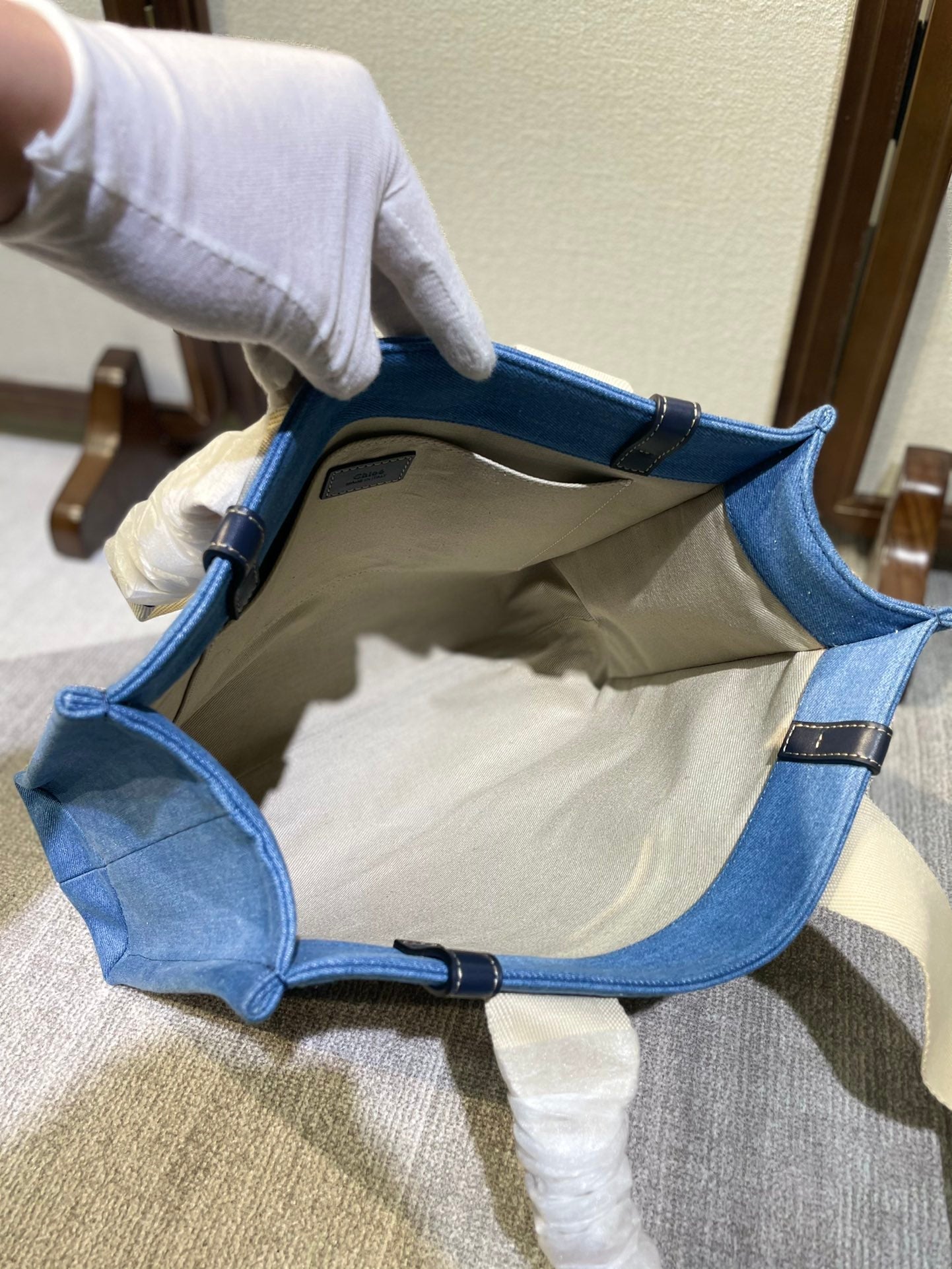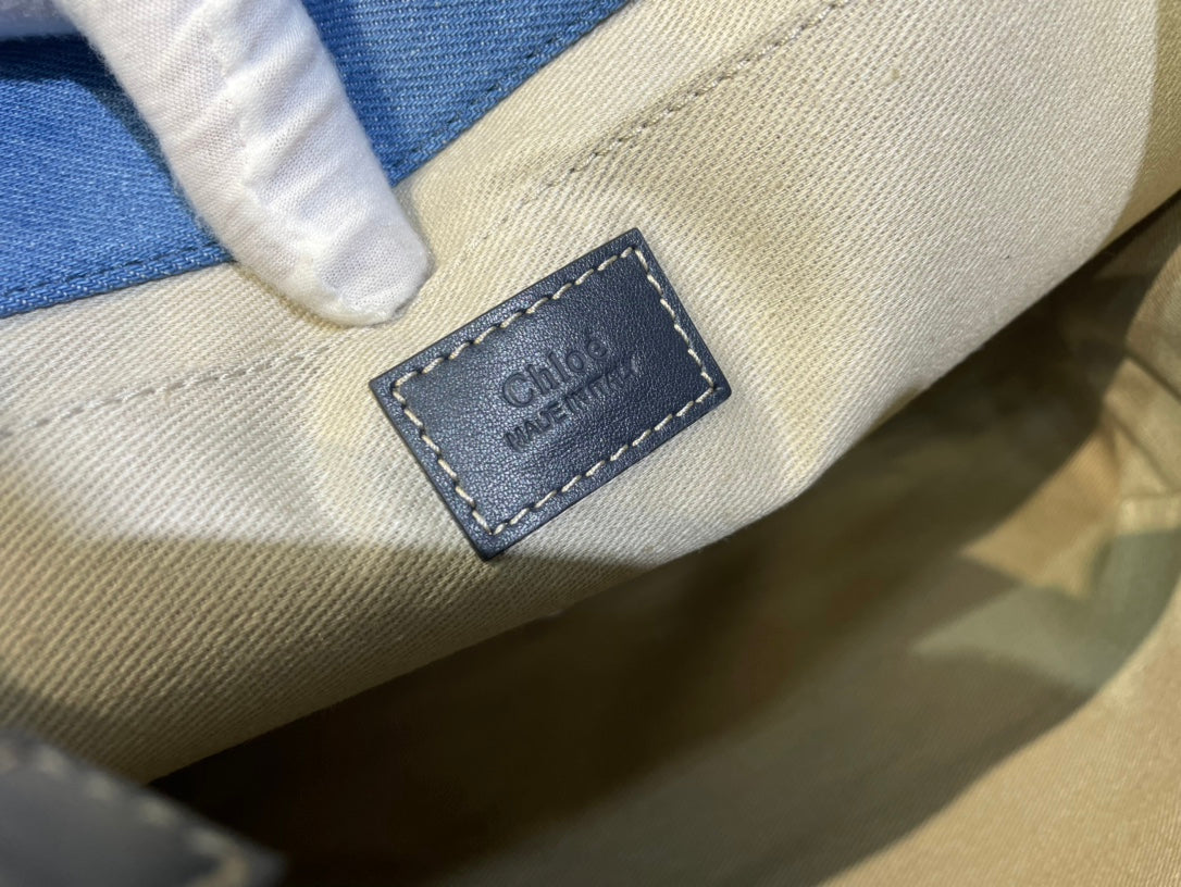 • Material: Denim. Calfskin
