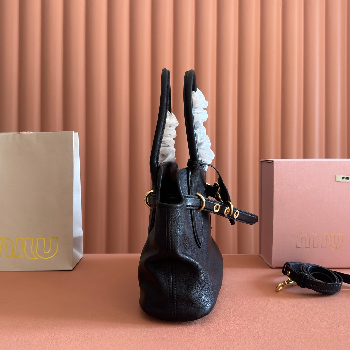 MIUMIU 26S BORSA AVENTURE BAG 30 IN BLACK CALFSKIN GOLD HARDWARE