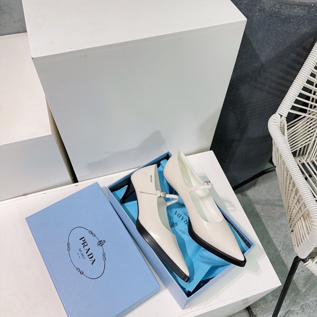 POINTED TOE MEDIUM HEEL PUMPS IN RICE WHITE GLOSSY LAMBSKIN