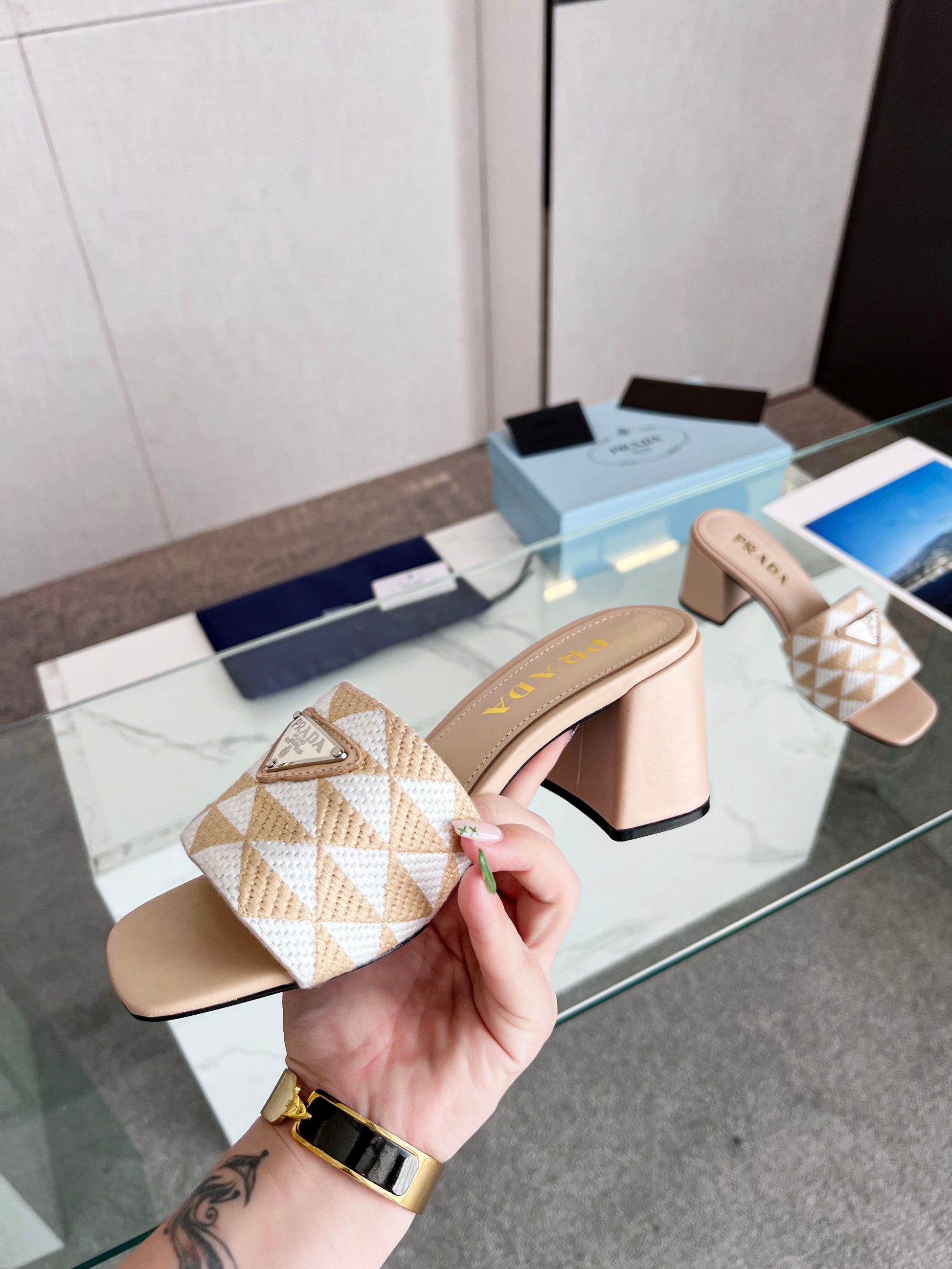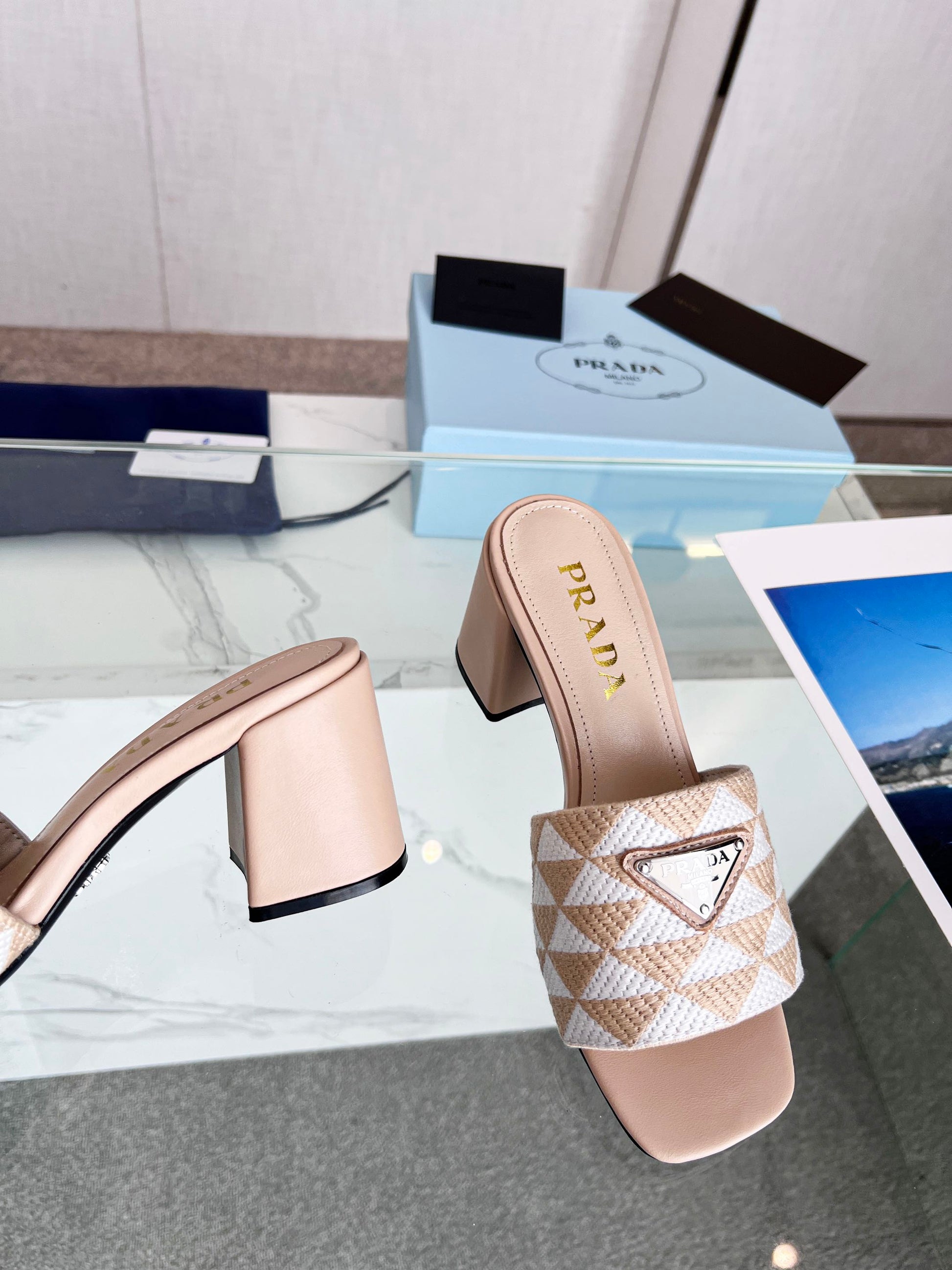 PRA EMBROIDERED SLIDES 65 BEIGE FABRIC