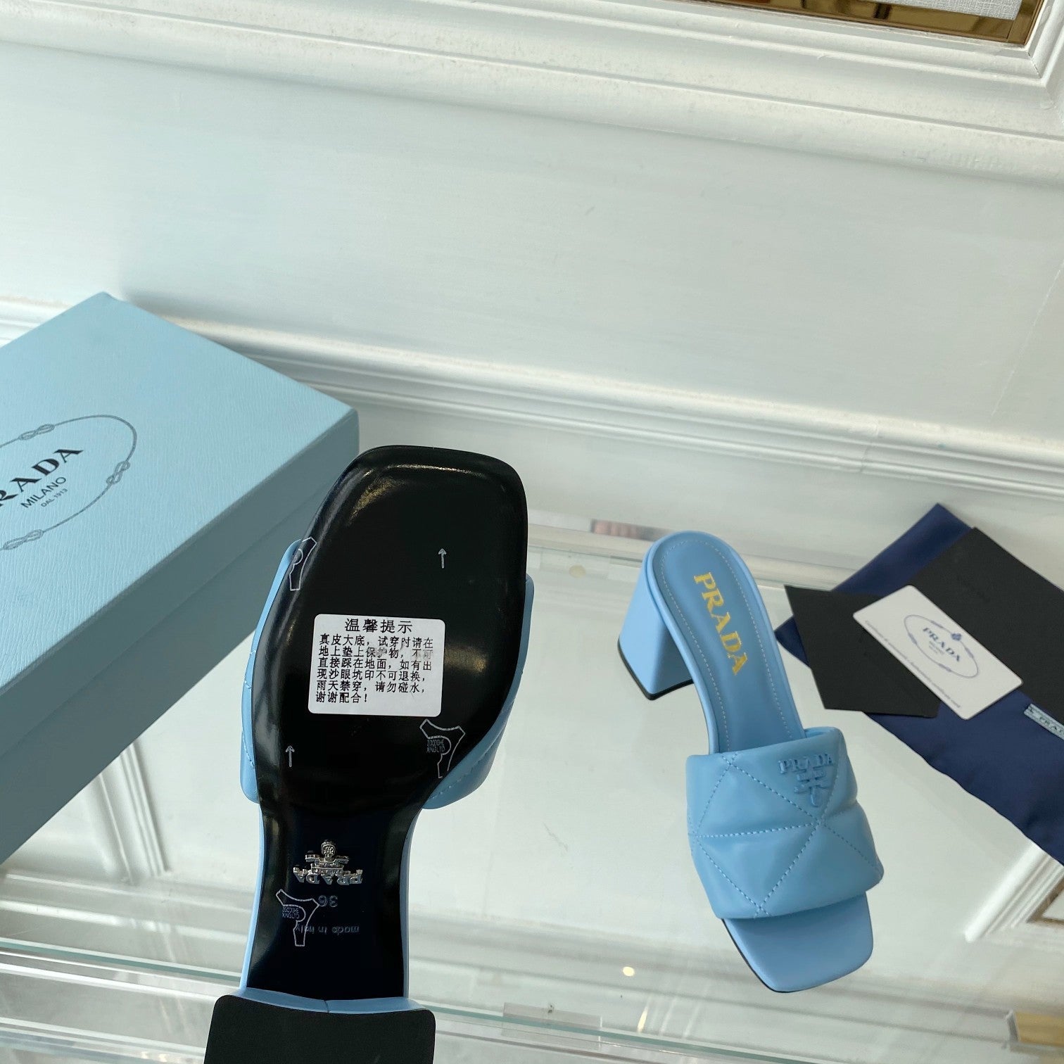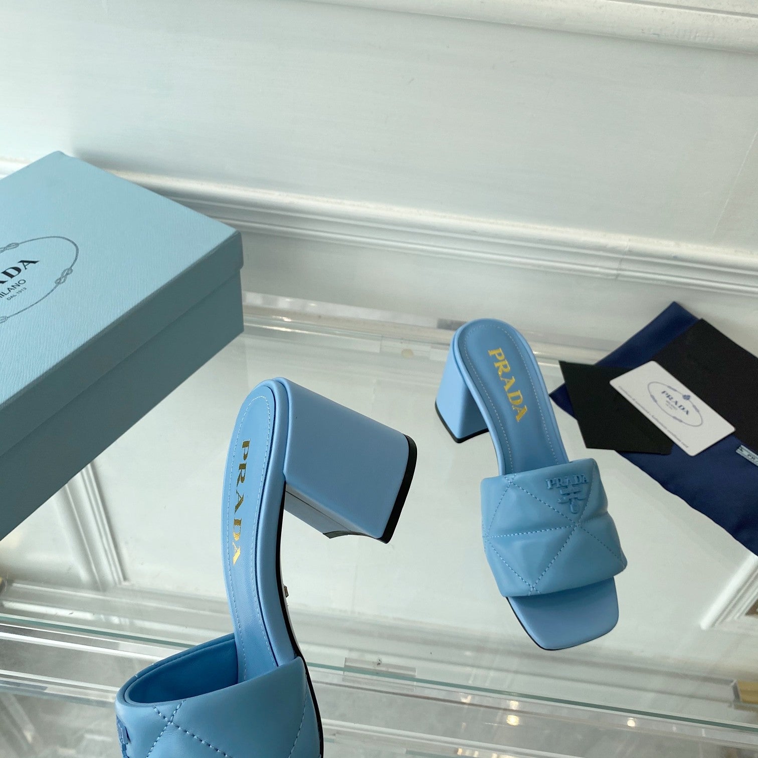 Pra Heeled Sandal 65 Square Sole Quilted Sky Blue Leather