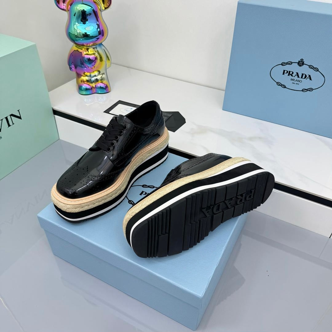 PRADA 25S FLAT WEDGE SHOES 60MM IN BLACK GLOSSY CALFSKIN