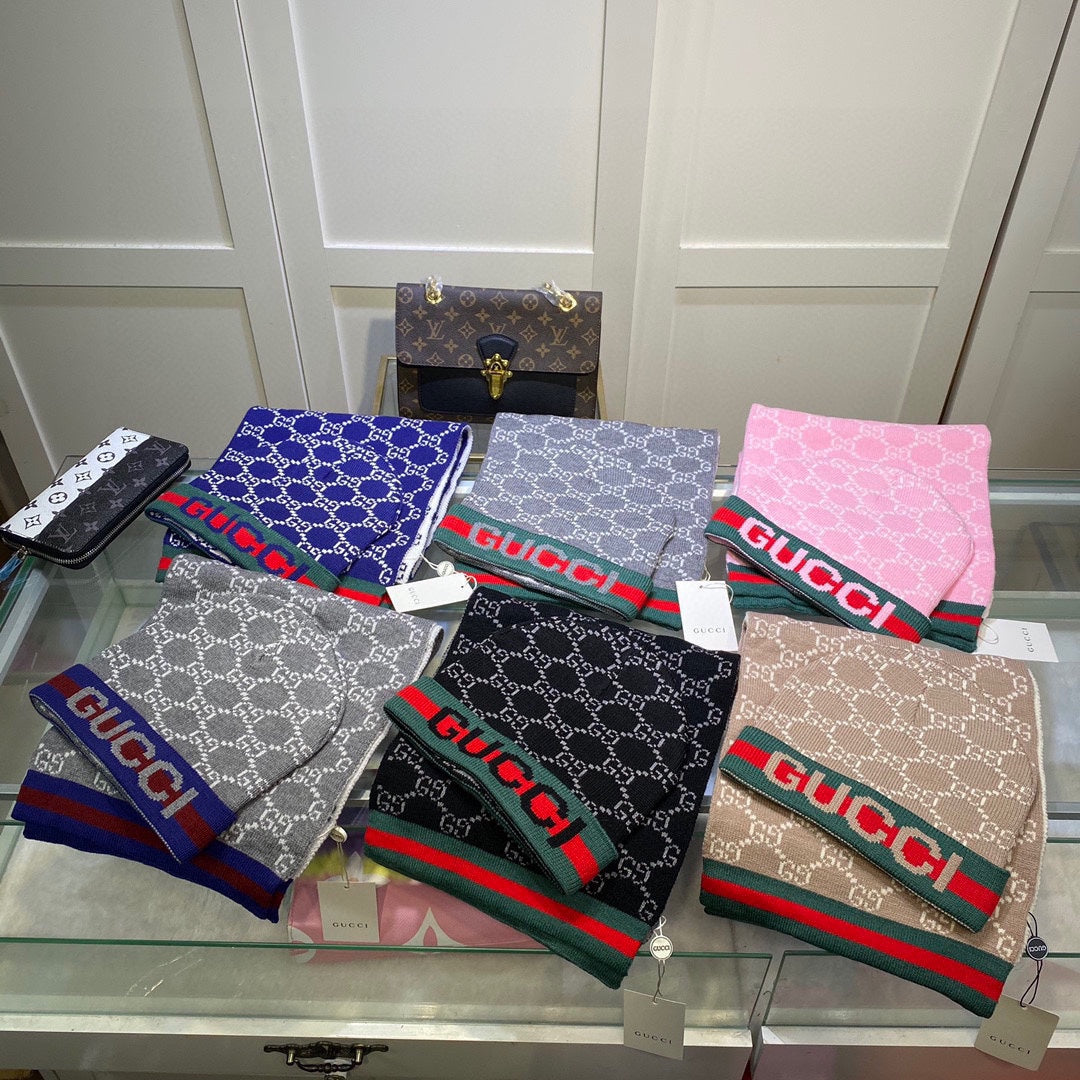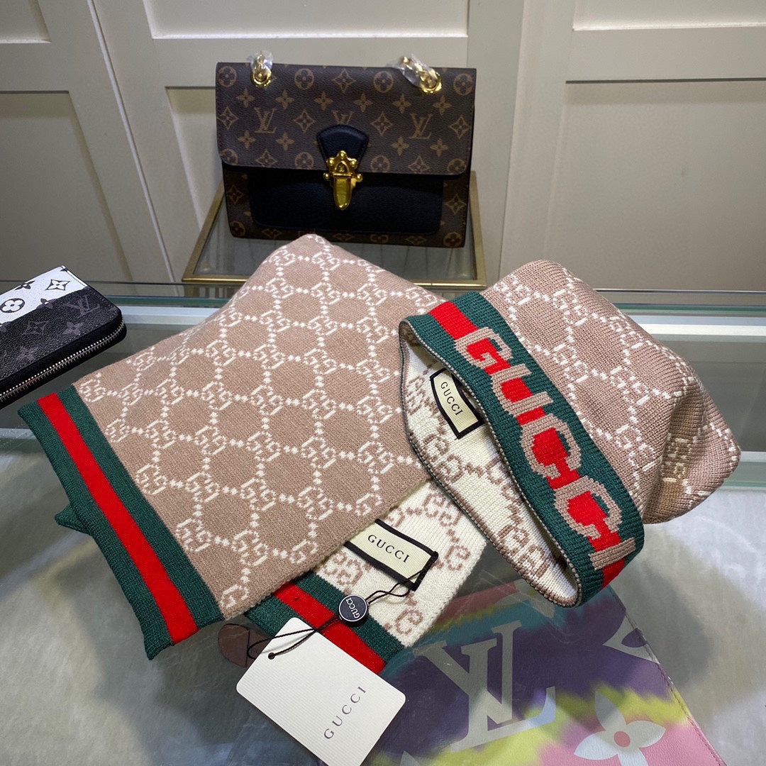 SET SCARF AND HAT IN CAMEL BROWN MONOGRAM CASHMERE 349666