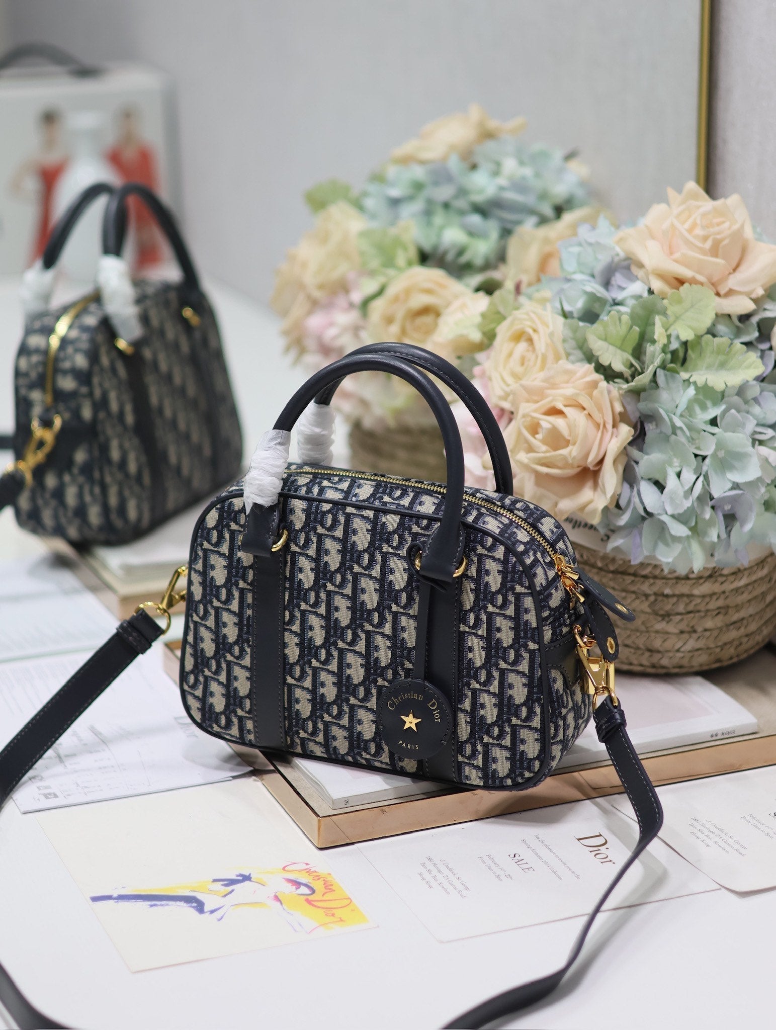 SMALL 25 D-VIBE BOWLING BAG IN BLUE MONOGRAM OBLIQUE JACQUARD