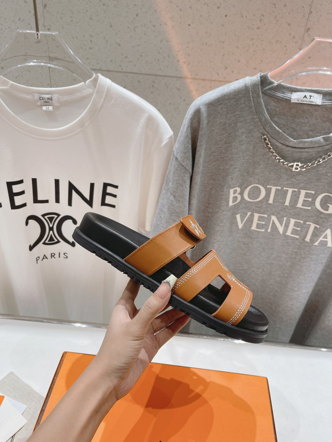 STAR-PATTERNED SANDAL BLACK AND CARAMEL CALFSKIN