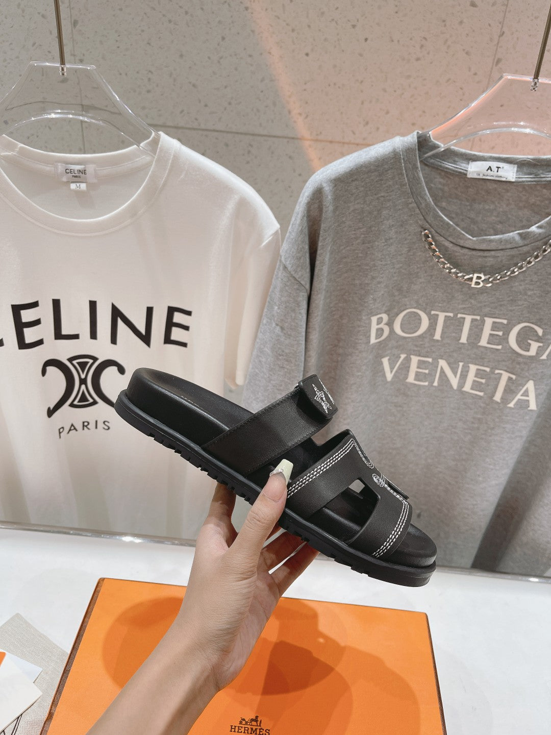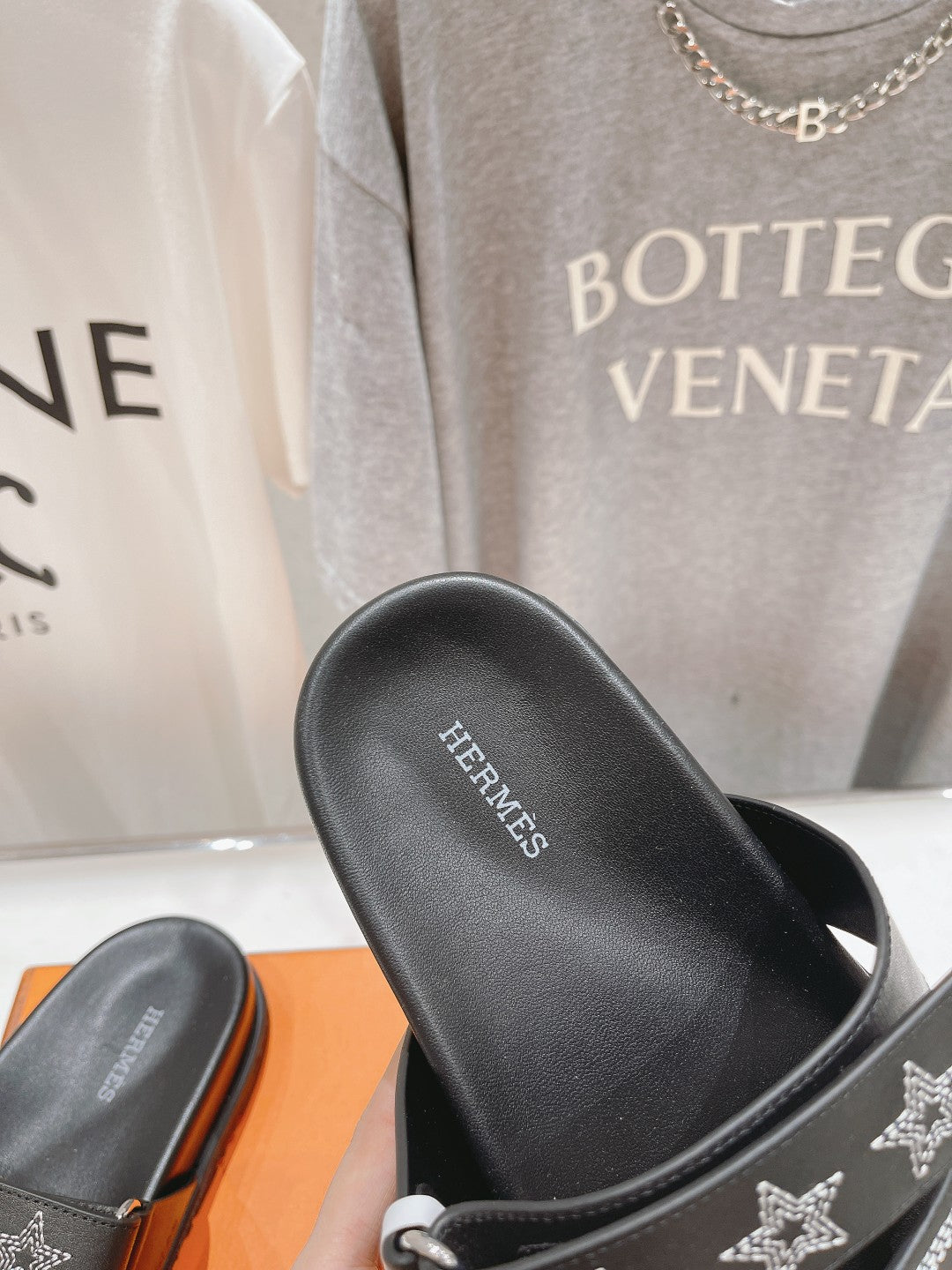 STAR-PATTERNED SANDAL BLACK CALFSKIN